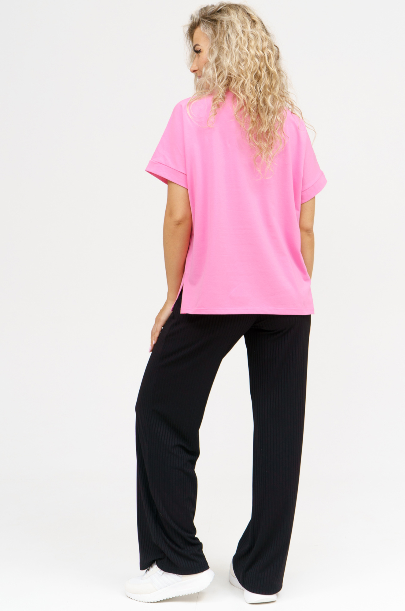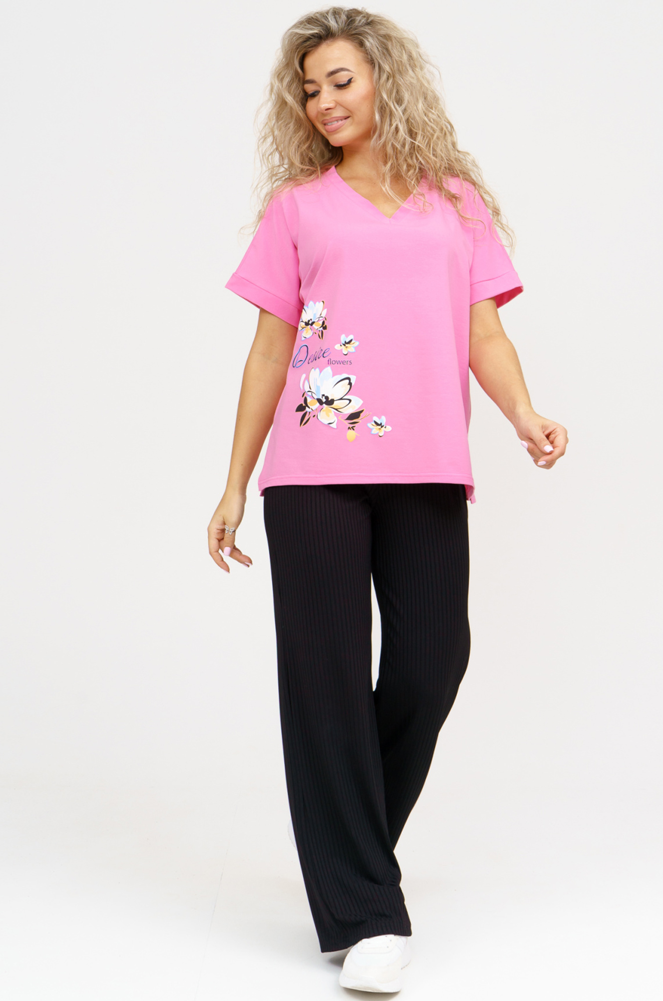 Женская яркая футболка с цветочным принтом. Модель прямого кроя с разрезами по бокам. Рукав цельнокроеный на манжете. Глубокий вырез "галочкой" подчеркнёт зону декольте и сделает образ привлекательным. Отлично будет сочетается с джинсами, шортами или лосинами, создавая модный образ.