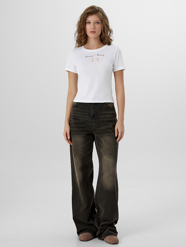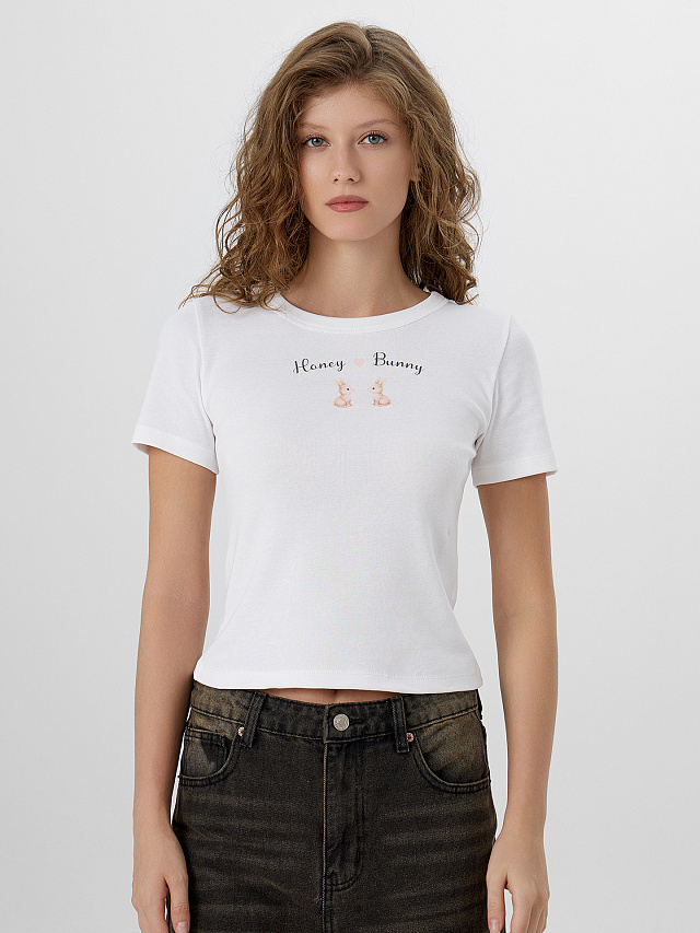 Женская футболка прилегающего силуэта с надписью "Милый зайчик" - идеальная базовая модель для вашего гардероба.