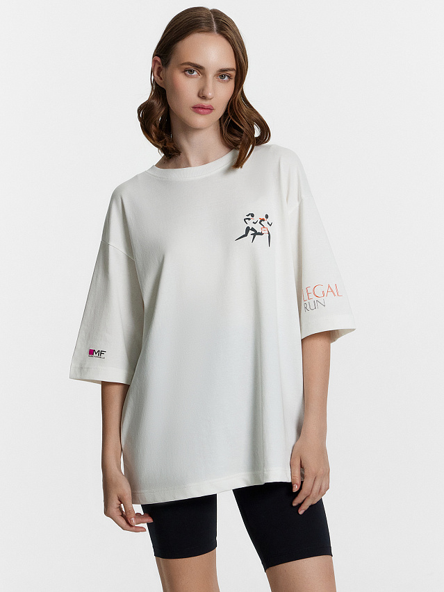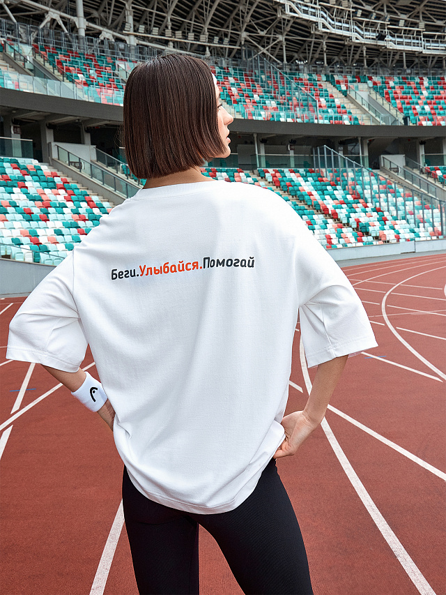 Футболка женская белая с принтом и надписью "Беги. Улыбайся. Помогай"