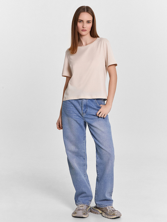 Эта женская футболка прямого силуэта — универсальный и комфортный элемент гардероба, подходящий для повседневных образов. Классический прямой крой обеспечивает удобную посадку, не сковывая движений. Круглая горловина придает футболке лаконичный и аккуратный вид, а короткие рукава делают ее идеальной для теплого сезона. Нижние срезы изделия и рукавов обработаны швом вподгибку, что гарантирует аккуратность и долговечность модели. Выполненная из хлопковой кулирки, футболка отличается мягкостью, воздухопроницаемостью и приятной текстурой, обеспечивая комфорт в течение всего дня. Базовый вариант, который легко сочетается с джинсами, юбками или шортами, создавая стильные и удобные повседневные образы!