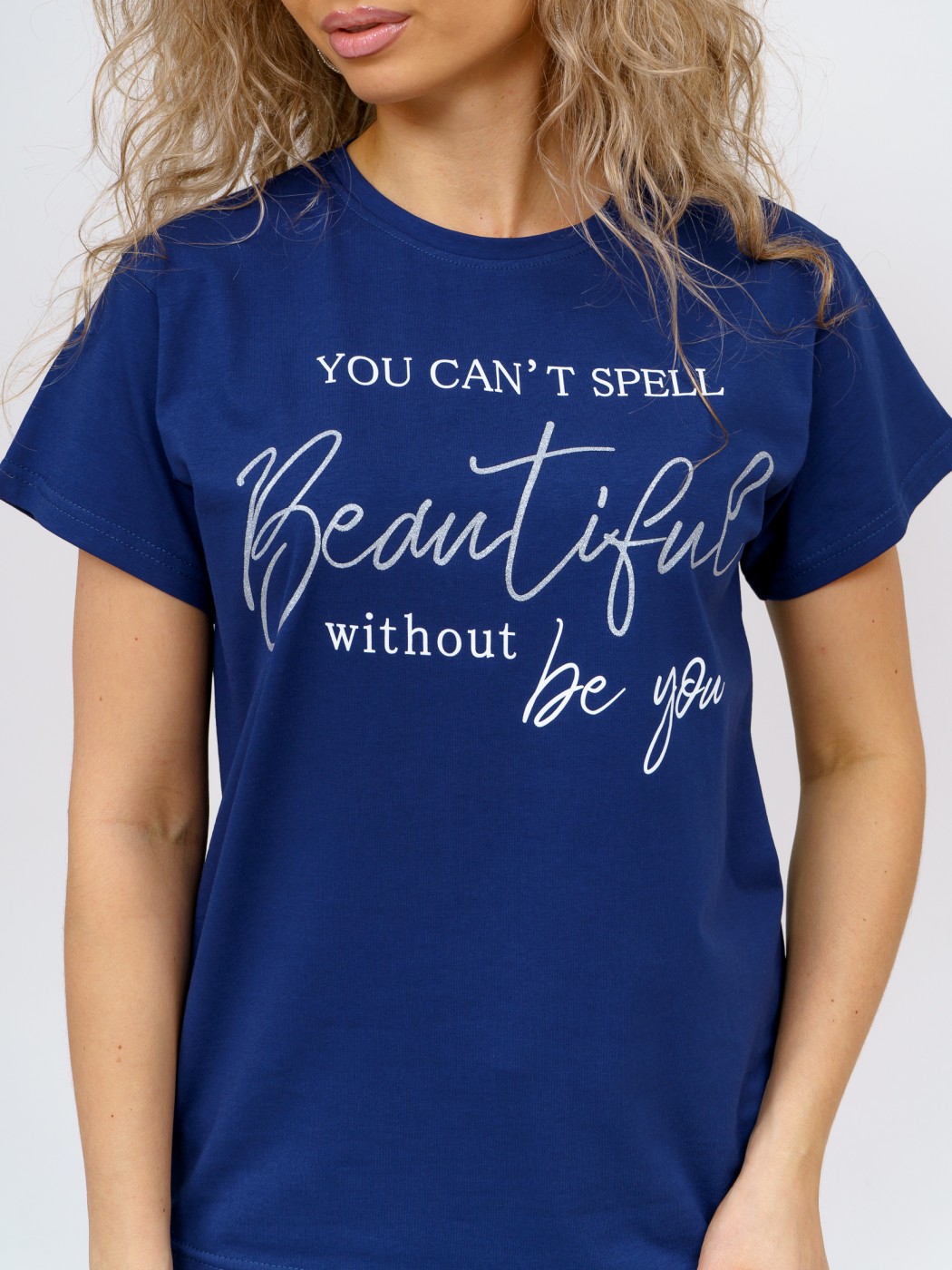 Красивая женская футболка с печатным стильным принтом на полочке. Незаменимая вещь в гардеробе, которая сочетается и с джинсами, и с шортами, и с юбкой.