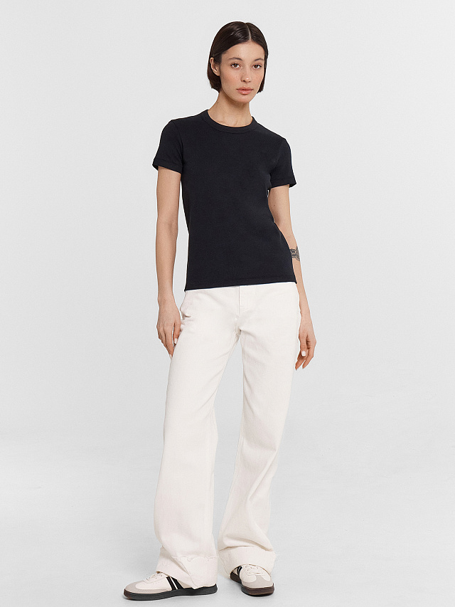 Базовая женская футболка из коллекции Premium Base — универсальный элемент гардероба, который идеально сочетает стиль, комфорт и качество. Модель прямого силуэта с короткими рукавами и круглой горловиной подчеркивает лаконичность дизайна, подходя для самых разных образов. Нижние срезы обработаны швом вподгибку, что обеспечивает аккуратный вид и долговечность изделия. Особенность этой футболки — материал интерлок. Этот двойной трикотаж отличается гладкостью, мягкостью и прочностью. Благодаря плотной структуре интерлок прекрасно сохраняет форму, оставаясь устойчивым к растяжению и деформации, что делает его отличным выбором для повседневной носки. Кроме того, материал обеспечивает хорошую воздухопроницаемость, даря комфорт в течение всего дня.