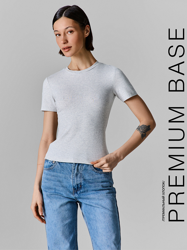 Серая футболка из коллекции Premium Base — базовая вещь, которая пригодится в любом гардеробе. Прилегающий силуэт мягко облегает фигуру, подчёркивая естественные линии, но при этом не сковывает движений. Короткие рукава и аккуратная горловина делают модель лаконичной и универсальной.