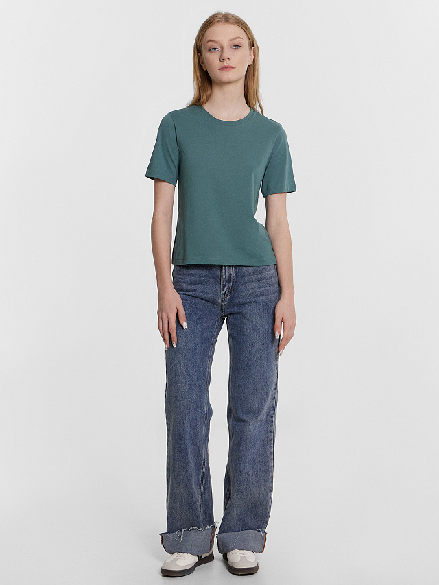 Базовая футболка Mark Formelle - удачное вложение в ваш гардероб. Модель прямого кроя с круглым вырезом и короткими рукавами выполнена из нежной кулирки -натурального хлопкового материала, который отличается мягкостью, воздухопроницаемостью и комфортом при носке. Эта футболка станет незаменимой частью вашего повседневного гардероба, сочетая в себе стиль и удобство. Рекомендуем!