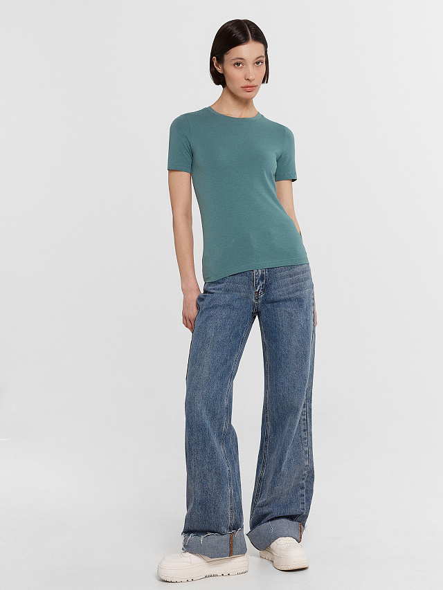 Женская футболка прилегающего силуэта – стильное и комфортное решение для повседневного гардероба. Модель с круглой горловиной и короткими рукавами идеально подчёркивает фигуру, придавая изящность и элегантность. Нижние срезы футболки и рукавов аккуратно обработаны швом вподгибку, что обеспечивает долговечность и аккуратный вид. Изготовленная из мягкой и приятной кулирки, эта модель дарит комфорт и удобство в течение всего дня. Прекрасно сочетается с различными элементами гардероба, позволяя создавать разнообразные и стильные образы.