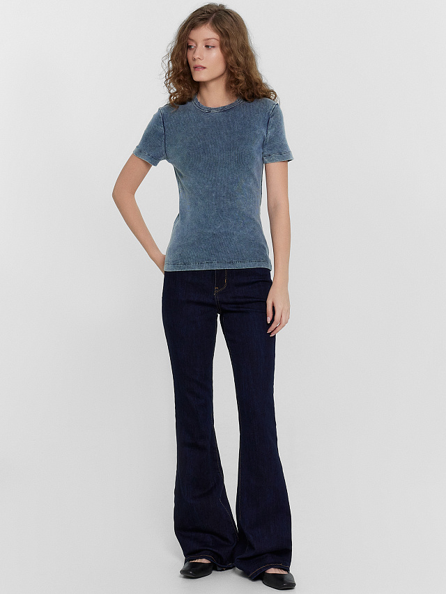 Базовая футболка женская прилегающего силуэта из трикотажного полотна рибана. Эта модель — одно из уникальных изделий, которые проходят этап дополнительной обработки. Благодаря технологии "эйсид", каждая вещь отличается своим особенным и неповторимым рисунком. Любые видимые отличия являются частью характеристики изделия. Материал мягкий и приятный наощупь, отлично тянется, не стесняет движений. Горловина круглой формы. Рукав втачной, короткий. Оригинальная расцветка с обработкой "эйсид" делает эту футболку уникальной. Широкий размерный ряд. Порадуйте себя и своих близких практичными подарками от Mark Formelle!