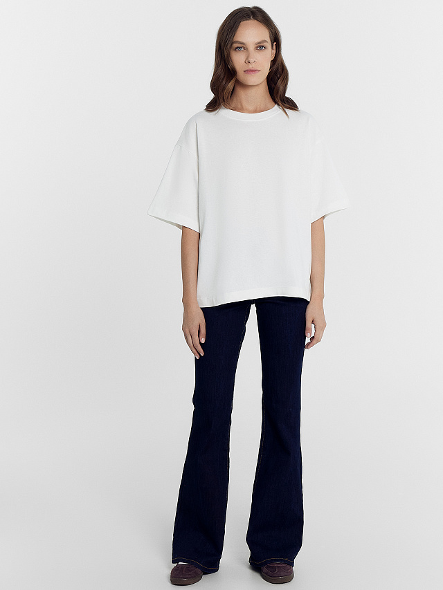 Стильная однотонная футболка женская свободного силуэта из высококачественного хлопка. Горловина круглой формы. Свободу движений гарантируют спущенная линия плеча и углубленная пройма. Рукава широкие, чуть выше локтя. Легкий и натуральный материал футболки женской хорошо пропускает воздух, слегка тянется и не сковывает движений. Такая футболка женская оверсайз, отлично подойдет для создания casual образа. В линейке представлены базовые модели, а также есть интересные варианты с принтами. Широкий размерный ряд. Порадуйте себя и своих близких практичными подарками от Mark Formelle!
