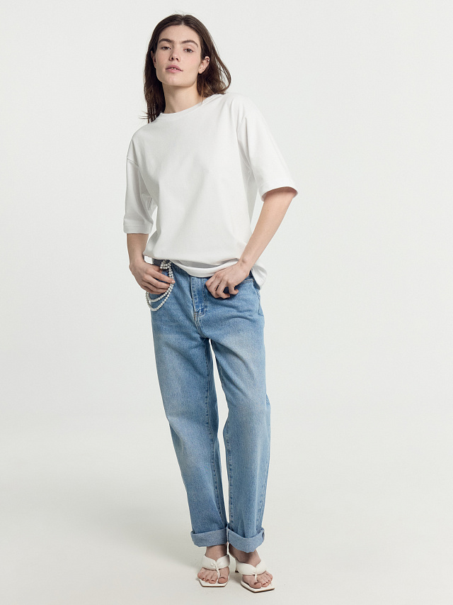 Весенняя новинка из коллекции MF Premium — стильная футболка женская свободного силуэта из интерлока. Материал отлично держит форму и комфортен в носке. Модель с круглой горловиной из рибаны. Плечо спущено, пройма углублена. Рукав удлиненный, до локтя. Гармоничное сочетание комфорта и стиля делает ее идеальным вариантом для повседневного гардероба. Материал обеспечивает мягкость и хорошую воздухопроницаемость, а исключительное исполнение гарантирует долговечность изделия. Дополнить можно низом из премиальной базовой линейки для женщин.