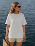 Стильная однотонная оверсайз футболка женская из высококачественного хлопка. Горловина круглой формы. Свободу движений гарантируют спущенная линия плеча и углубленная пройма. Рукава широкие, чуть выше локтя. Легкий и натуральный материал футболки женской хорошо пропускает воздух, слегка тянется и не сковывает движений. Такая футболка женская оверсайз, отлично подойдет для создания casual образа. В линейке представлены базовые модели, а также есть интересные варианты с принтами. Широкий размерный ряд. Порадуйте себя и своих близких практичными подарками от Mark Formelle!