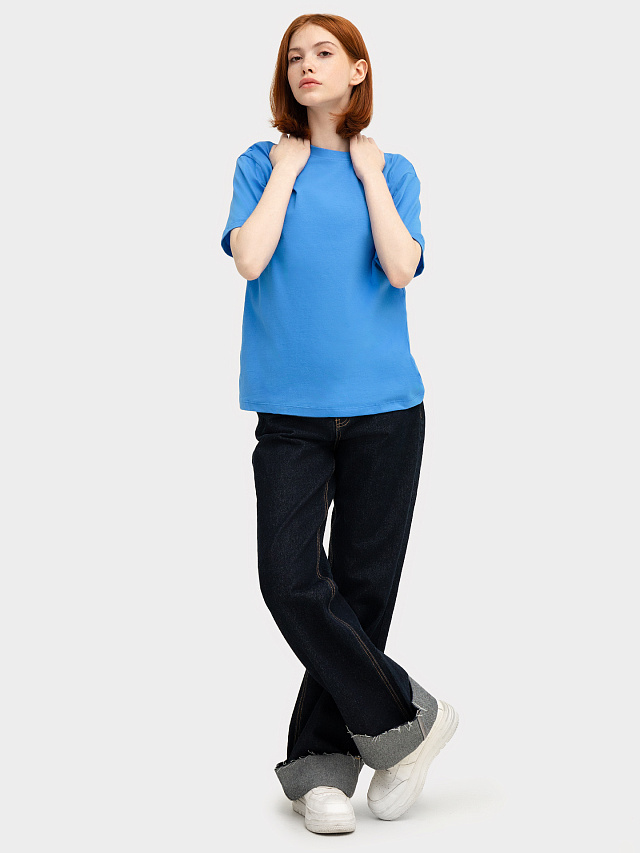 Стильная футболка женская из высококачественного хлопка. Вырез круглой формы. Свободу движений гарантируют спущенная линия плеча. Рукава широкие, чуть выше локтя. Классическая футболка — удобная и универсальная. Комбинировать можно с чем угодно, отлично подойдет для отдыха, прогулки, ее можно надеть на занятия спортом, фитнесом или под другую одежду. Базовые цвета позволяют сочетать со множеством других предметов гардероба. В линейке представлены разные модели, есть интересные варианты футболок с принтами. Широкий размерный ряд, актуальные модели plus-size. Порадуйте себя и своих близких практичными подарками!