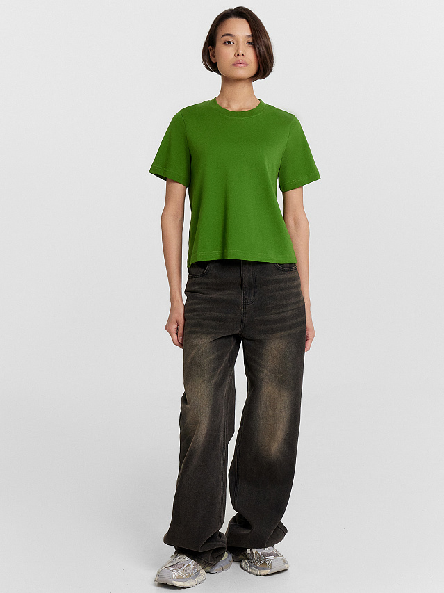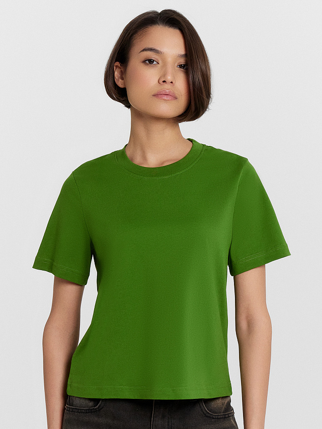 Стильная женская футболка из натурального хлопка станет отличным дополнением вашего гардероба. Легкий и натуральный материал хорошо пропускает воздух, слегка тянется и не стесняет движений, обеспечивая комфорт на весь день. Круглый вырез и спущенная линия плеча с углубленной проймой гарантируют свободу движений, а широкие рукава чуть выше локтя добавляют стильности и удобства. Эта классическая оверсайз футболка – базовый элемент гардероба, который можно комбинировать с чем угодно. Она идеально подходит для отдыха, прогулок и занятий спортом. Однотонный цвет позволяет легко сочетать её с множеством других вещей. Порадуйте себя и своих близких практичными подарками от Mark Formelle!
