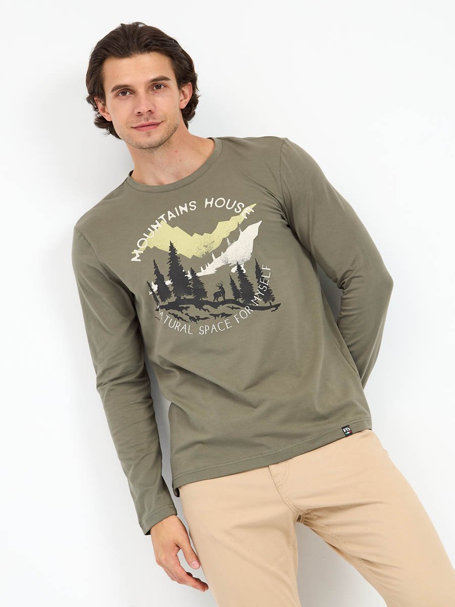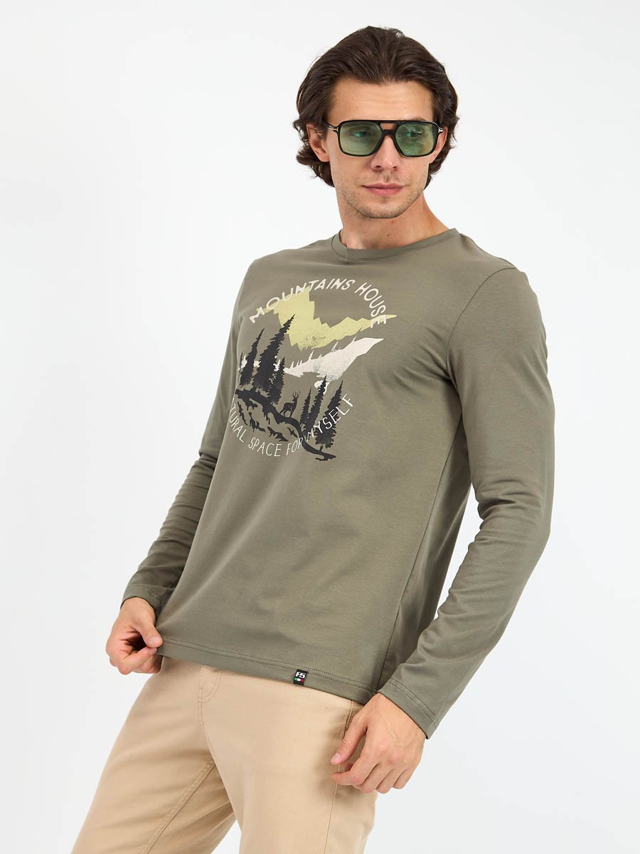 Мужская футболка F5, Regular fit (полуприлегающий силуэт), круглый вырез горловины, длинный рукав. Выполнена из классического трикотажного полотна. 95%Хлопок, 5%Лайкра