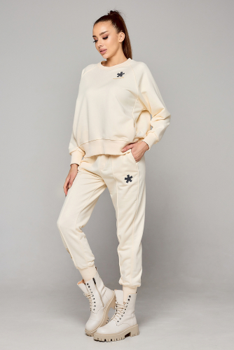Костюм оверсайз, состоящий из свитшота и брюк, станет настоящей находкой для девушек, ценящих стиль и комфорт в своих нарядах.Модный оверсайз фасон данной модели прекрасно совмещается с различными стилями, добавляя изюминку в ваш гардероб. Удобные штаны и дизайнерская кофта с принтом подарят вам уют как в помещении, так и на улице. Этот свежий и актуальный наряд подходит как для активного отдыха на свежем воздухе осенью и зимой, так и для повседневного ношения. Высокое качество производства обеспечивает комфортную посадку и свободу движений на протяжении всего дня.
