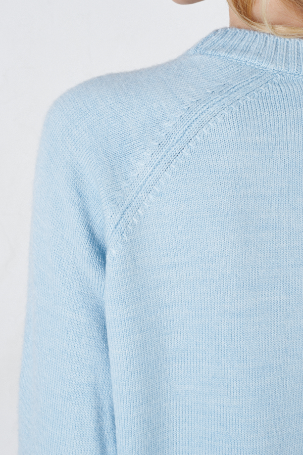 Джемпер свободного силуэта с узором «сердце» в области груди. Низ изделия асимметричной длины (спинка удлинена относительно переда). Длинный рукав-реглан. Круглый вырез горловины, низ изделия и низ рукава оформлены резинкой. Изделие выполнено из мягкой меланжевой пряжи.