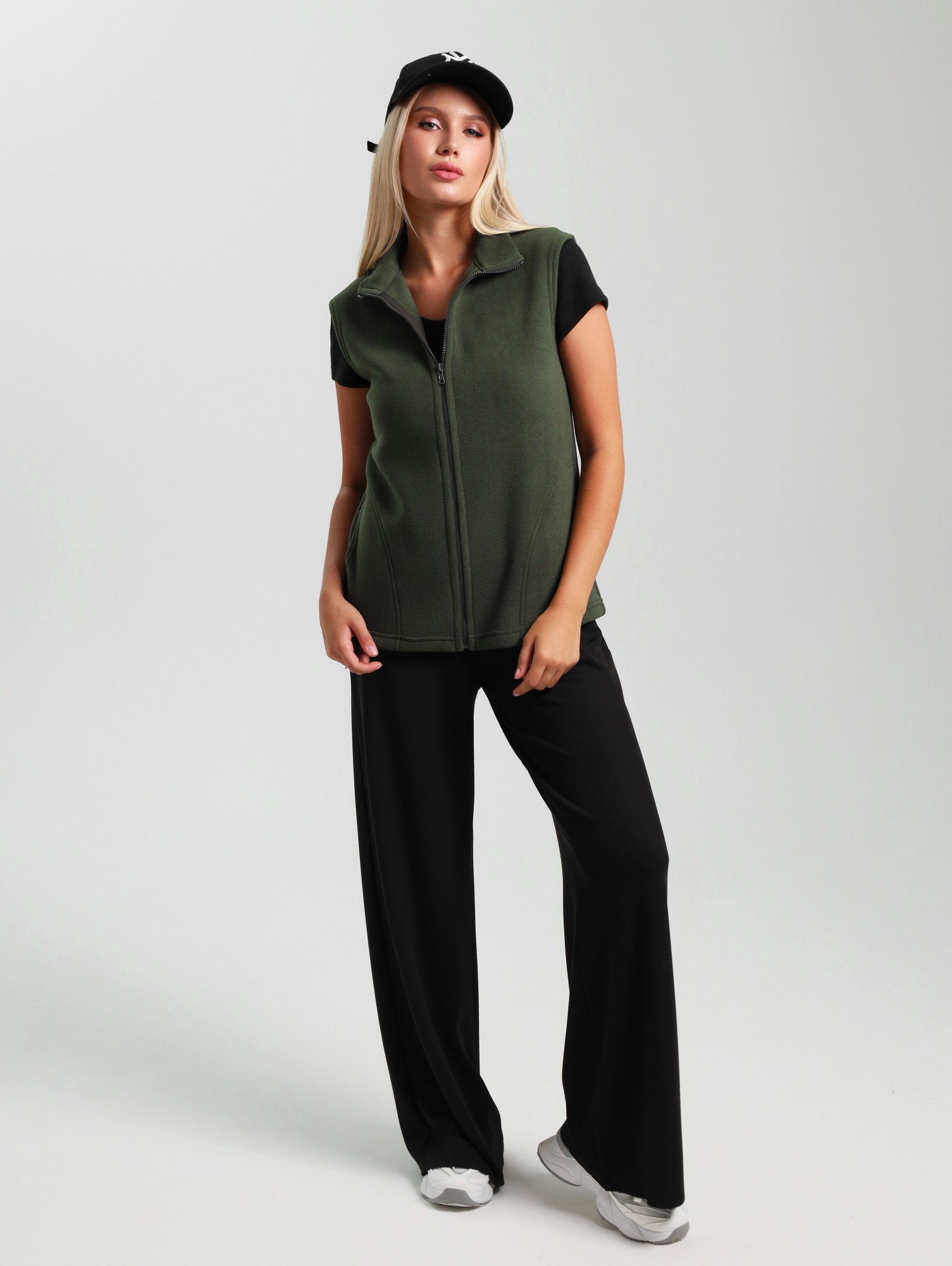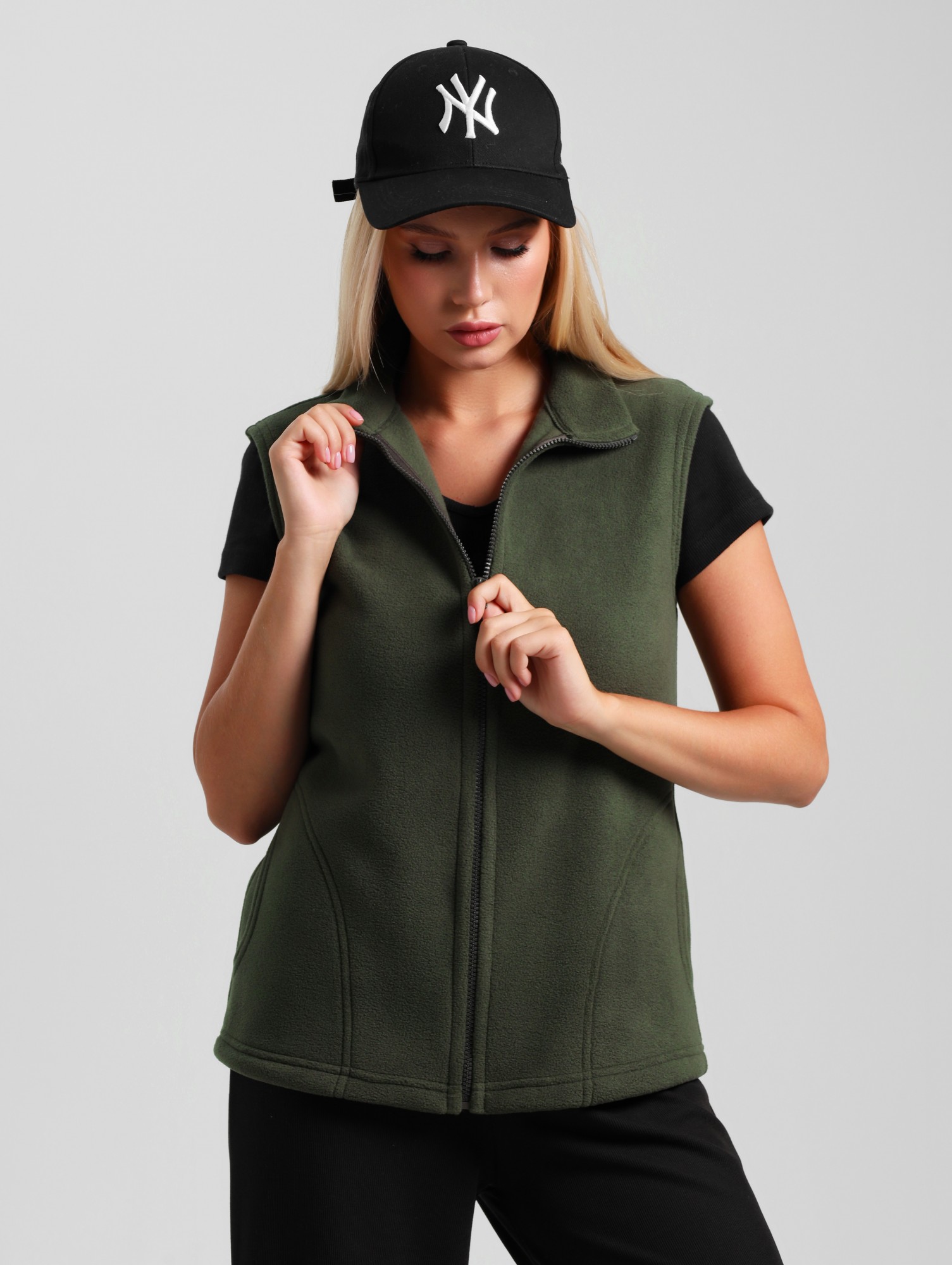 Жилет молодежный из трикотажного полотна «флис», полуприлегающего силуэта, воротником «стойка», карманами в боковых швах фигурной формы, центральной бортовой застежкой на тесьму «молния».