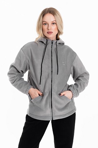 Женская толстовка свободного кроя — отличный выбор для повседневной носки. Она изготовлена из мягкого и тёплого однотонного флиса, который обеспечивает комфорт в прохладную погоду. Толстовка имеет воротник-стойку, удобный капюшон и рукава на манжете с резинкой для защиты от ветра. Центральная застёжка на молнию и шнур в капюшоне выполнены в черном цвете, что придает изделию оригинальность. В накладные карманы удобно поместить необходимые мелочи. На передней части толстовки расположена вышивка. Эта толстовка идеально подойдёт для прогулок, активного отдыха или домашней носки. Она выполнена из качественного материала, который сохраняет форму и цвет после стирки, не скатывается.
