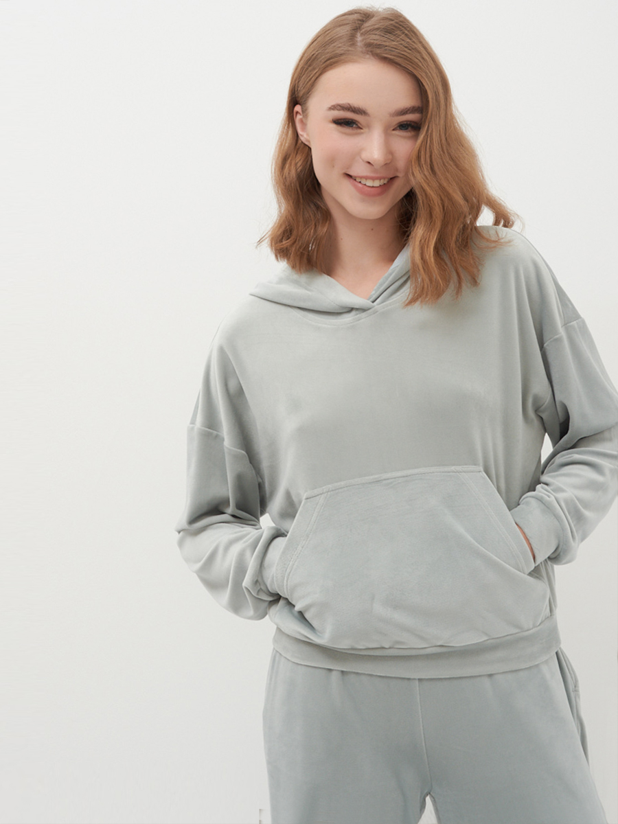 Представляем стильное укороченное худи оверсайз из премиального велюра на трикотажной основе – идеальное дополнение к ассортименту вашего магазина или шоурума. Эта модель сочетает в себе актуальные тренды и безупречный комфорт, что гарантирует ее высокий спрос среди ваших покупательниц.Наши дизайнеры тщательно проработали каждую деталь, чтобы худи обеспечивало максимальное удобство и при этом выглядело эффектно. Мягкий, приятный к телу велюр дарит ощущение уюта и нежности. Свободный крой оверсайз со спущенной линией плеча и длинный прямой рукав на манжете подчеркивают расслабленный, но при этом современный стиль. Капюшон на трикотажной подкладке в тон и функциональный карман-«кенгуру» на полочке добавляют практичности.Это худи – универсальный элемент гардероба, который легко интегрируется как в комплекты для дома и отдыха, так и в повседневные городские образы. Оно идеально подходит для создания модных, многослойных луков, что делает его незаменимым товаром для вашей коллекции.Особенности изделия:Актуальный укороченный крой оверсайз.Высококачественный велюр на трикотажной основе.Удобный капюшон на подкладке и карман-«кенгуру».Универсальность для домашнего и повседневного гардероба.Соответствие стандартам качества TANTINO, подтвержденное полным циклом производства.Модель на фото (рост 175 см) представлена в 42 размере. Длина изделия: 53.4 см. Рекомендуется машинная стирка при 30 градусах для сохранения первоначального вида.