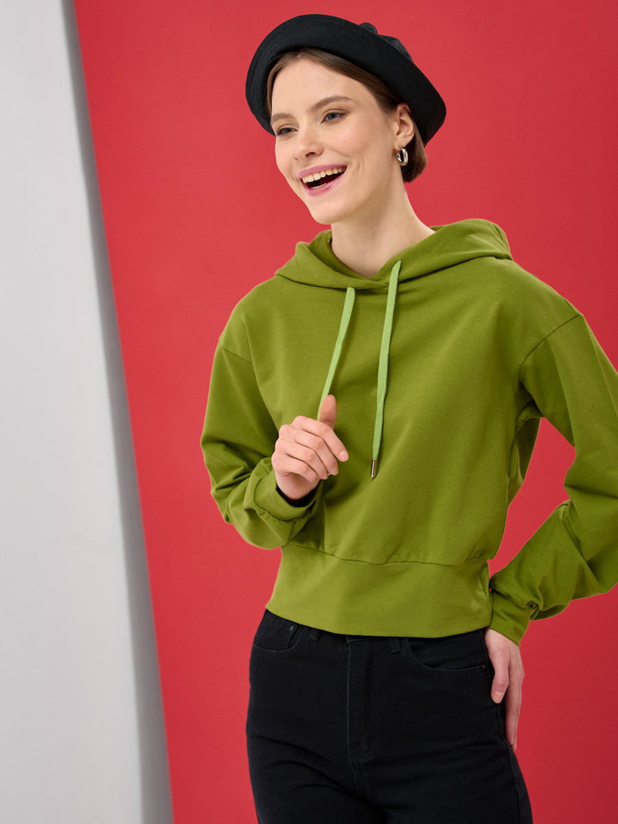 Представляем стильное укороченное худи – актуальную модель, разработанную для современных женских гардеробов. Как российский производитель полного цикла, 'TANTINO' гарантирует высочайшее качество каждого изделия, от этапа конструирования до пошива.Материал: Худи выполнено из однотонного футера 2-х нитки – мягкого, приятного к телу и износостойкого материала, который обеспечивает комфорт в носке и долговечность.Дизайн: Модель отличается укороченным кроем, что делает ее идеальной для создания многослойных образов и комбинаций с брюками или юбками с высокой посадкой. Капюшон со шнурком добавляет функциональности и завершает спортивный шик.Крой и посадка: Спущенная линия плеча и втачной длинный рукав на манжете обеспечивают свободную, расслабленную посадку, соответствующую современным трендам. Низ изделия выполнен на резинке-кашкорсе, что гарантирует идеальное прилегание и сохранение формы.Актуальность: Укороченные худи – это постоянный хит продаж в сегменте кэжуал и спортивного стиля, легко вписывающийся в различные стилистические решения. Модель в цвете хаки является универсальной и востребованной на рынке.Преимущества для оптовиков: Выбирая наше худи, вы приобретаете товар с безупречными лекалами, продуманным дизайном и стабильно высоким качеством. Собственное производство позволяет нам контролировать каждый этап, предлагая партнерам продукцию, которая обеспечит стабильный спрос в бутиках и шоурумах.Уход: Машинная стирка при 30 градусах обеспечивает простоту ухода за изделием.Параметры изделия: Длина по спинке составляет 50,9 см. Изделие на модели (рост 175 см) представлено в 42 размере, что демонстрирует оптимальную посадку.Добавьте это худи в ваш ассортимент, чтобы предложить клиентам комфорт, стиль и бескомпромиссное качество от российского производителя.