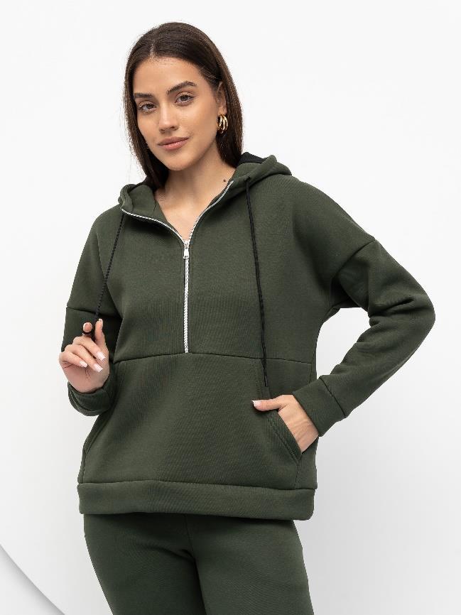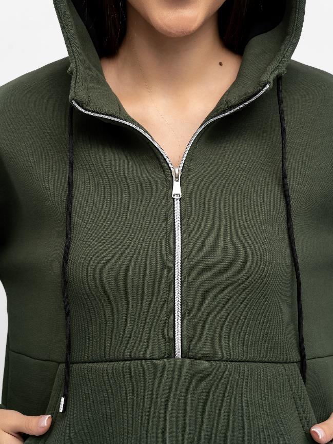 капюшоном и молнией делает образ модным и стильным. Комфортная модель позволяет скрыть недостатки фигуры, выполнена