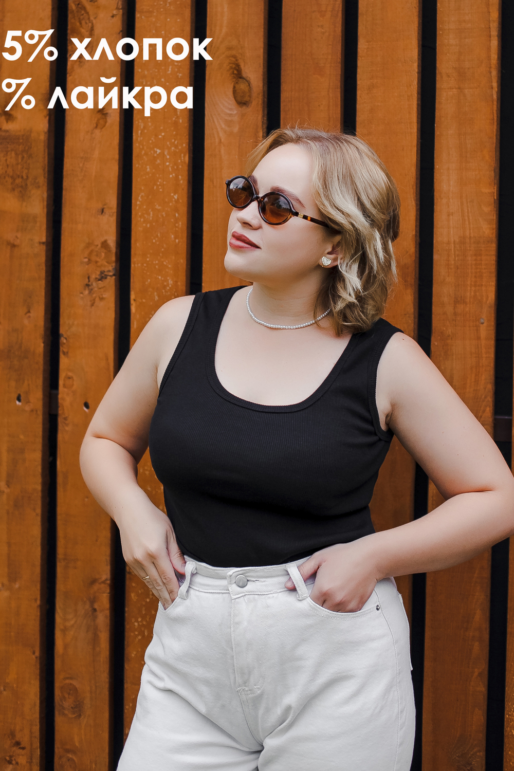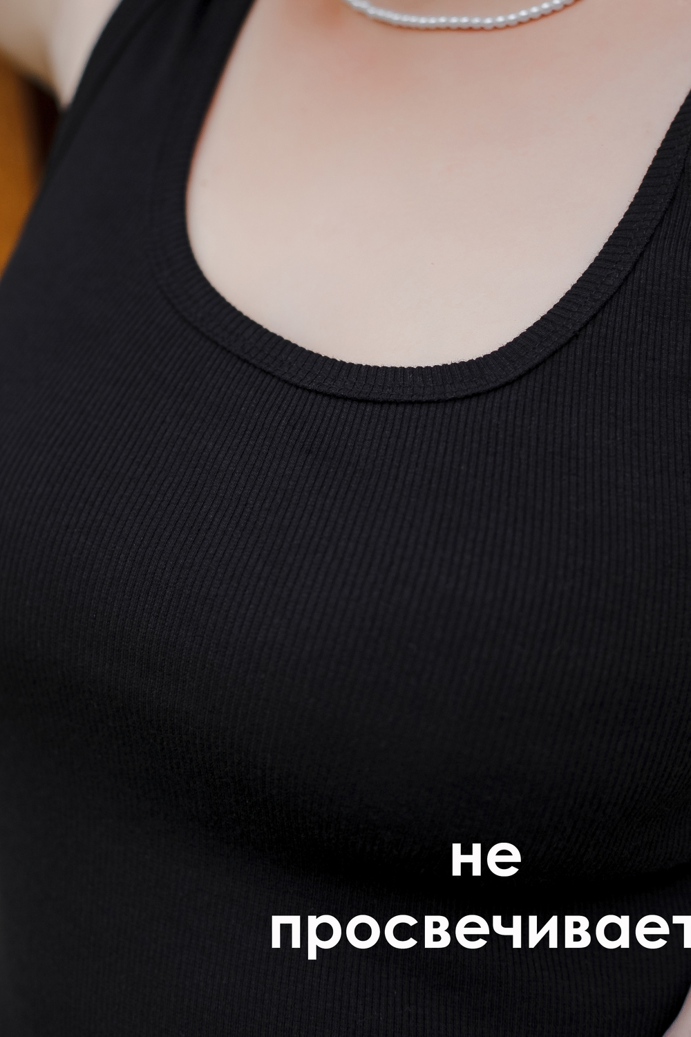 Женская майка в рубчик чёрный облегающий топ, созданный из мягкого и дышащего хлопка (95%) с добавлением 5% лайкры для идеальной посадки. Ткань приятна к телу, не вызывает раздражения и сохраняет форму даже после частых стирок, а фактура в рубчик придаёт изделию аккуратный, стильный вид. Цвет: черный; Материал: рибана;рибана; Состав: 95% хлопок, 5% лайкра.