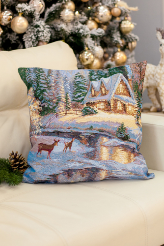 Односторонняя наволочка декоративная размером 50х50 см(+-3см). Уход - машинная стирка при 30 градусах на деликатном режиме с закрытой молнией. Не смешивать при стирке с другими тканями. Утюжить на среднем температурном режиме. При правильном уходе наволочка декоративная прослужит долгие годы в неизменном состоянии: не линяет и не дает усадку. Качественная и удобная в использовании, устойчивая к истиранию красок и деформациям при стирке, такой чехол на подушку будет долгие годы радовать красотой и эстетичностью! Обратная сторона наволочки на диван из однотонной велюровой ткани. Прекрасный рисунок на наволочке декоративной новогодней гармонично дополнит самый изысканный интерьер, привлекая внимание своей теплотой и оригинальностью. Мягкий материал необычайно приятен и прочен. Гобеленовое изделие так же подойдет в качестве ПОДАРКА вашим родным на новый год, друзьям и близким маме или бабушке.