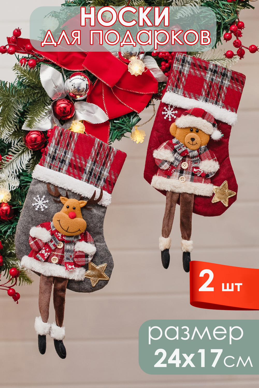 Подарочный носок‑сапожок это одновременно милый декор и удобная, экологичная упаковка для новогодних презентов. Корпус выполнен из плотной ткани. Аппликация олень или мишка вырезана и сшита из фетра, дополнена декоративной строчкой, помпонами и элементами, придающими лицам животных выразительность и объём.