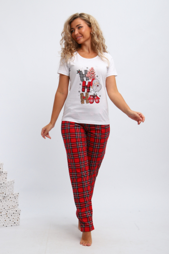 Стильный и модный набор для дома, который станет отличным выбором для девушек и женщин. Этот комплект создан с учетом всех современных тенденций, обеспечивая комфорт и удобство повседневной носки. Трикотажный материал приятно ощущается на коже, благодаря чему костюм идеально подходит для отдыха и сна. Этот красивый пижамный комплект включает в себя уютную футболку и брюки на резинке. Мягкий трикотаж обеспечивает свободу движений и комфорт в любое время суток. Одежда выполнена в ярком стиле, чтобы вы чувствовали себя привлекательно даже дома. Особенным украшением комплекта является оригинальный новогодний принт, создающий милый и игривый образ. Цвет: красный,белый; Материал: кулирка;кулирка; Состав: Хлопок 100%.