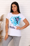 Футболка для женщин прямого силуэта с округлой горловиной. Рукав втачной, короткий. Полочку изделия украшает модный принт. Цвет: песочный; Материал: кулирка с лайкрой;кулирка с лайкрой; Состав: хлопок 95%, лайкра 5%.