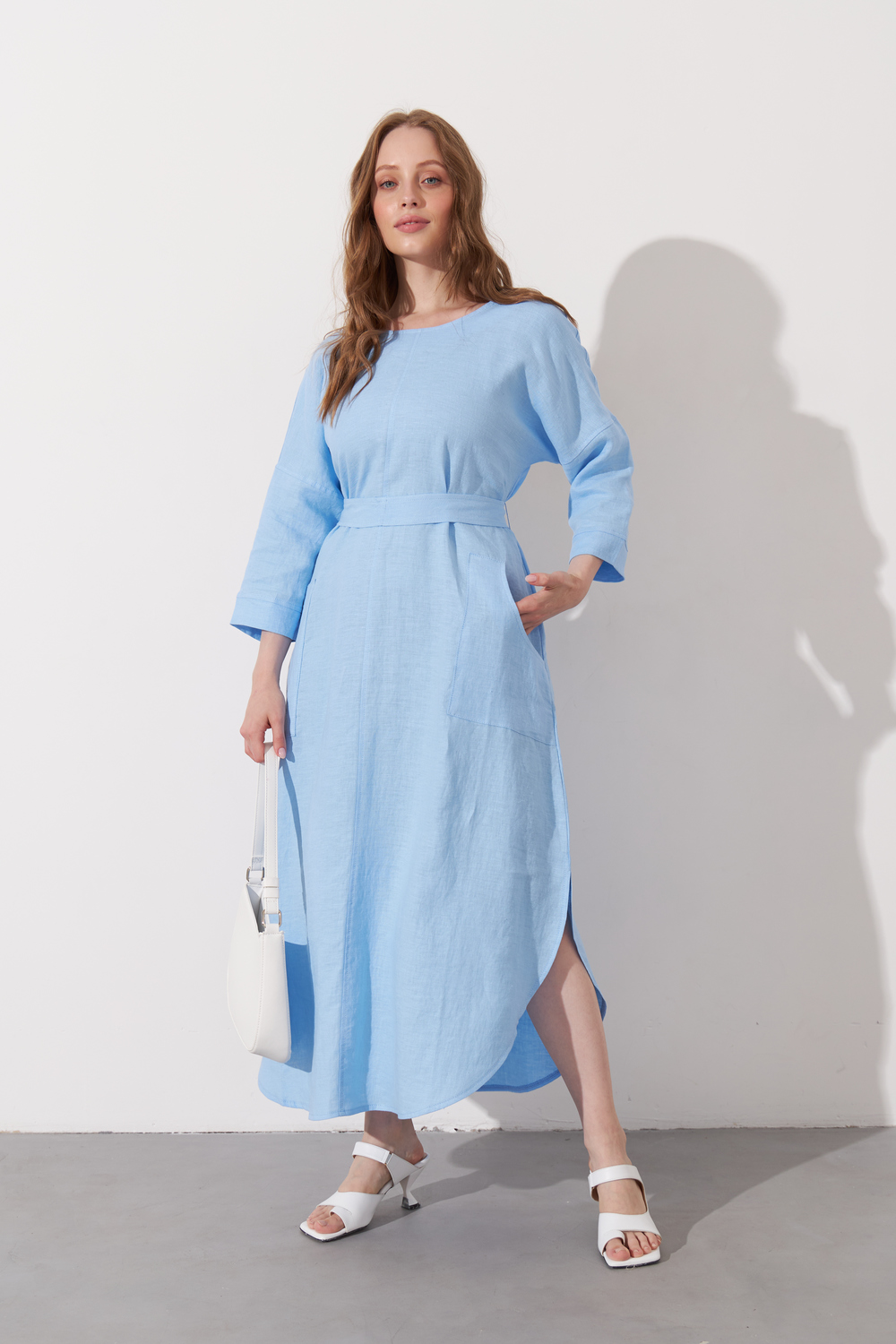Свободное платье из льна очень выгодно подчеркнет достоинства любой фигуры. Пояс сделает акцент на талии, а вертикальные отстрочки по переду и спинке визуально вытянут фигуру, делая ее стройнее. Отлично сочетается с белыми кедами, сандалями и любой другой летней обувью. Легкое женское платье для лета из натурального льна/натуральный лен/оверсайз платье/платье женское летнее.