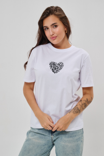 Женская футболка приталенного силуэта, выполненная из мягкой и приятной к телу кулирки. Модель отличается лаконичностью и удобством благодаря укороченным рукавам и аккуратному круглому вырезу горловины. Изюминкой изделия являются маленькие минималистичные принты в виде груб, выполненные в чёрном оттенке. Футболка универсальна, легко сочетается с различными элементами гардероба и станет отличным выбором для повседневной носки, подчёркивая женственную фигуру и индивидуальность своей обладательницы.