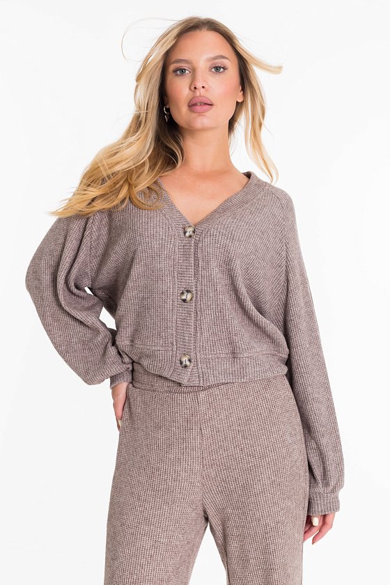 Женский кардиган из вязаного полотна — отличный выбор для повседневной носки. Кардиган свободного силуэта с центральной застёжкой на пуговицы.