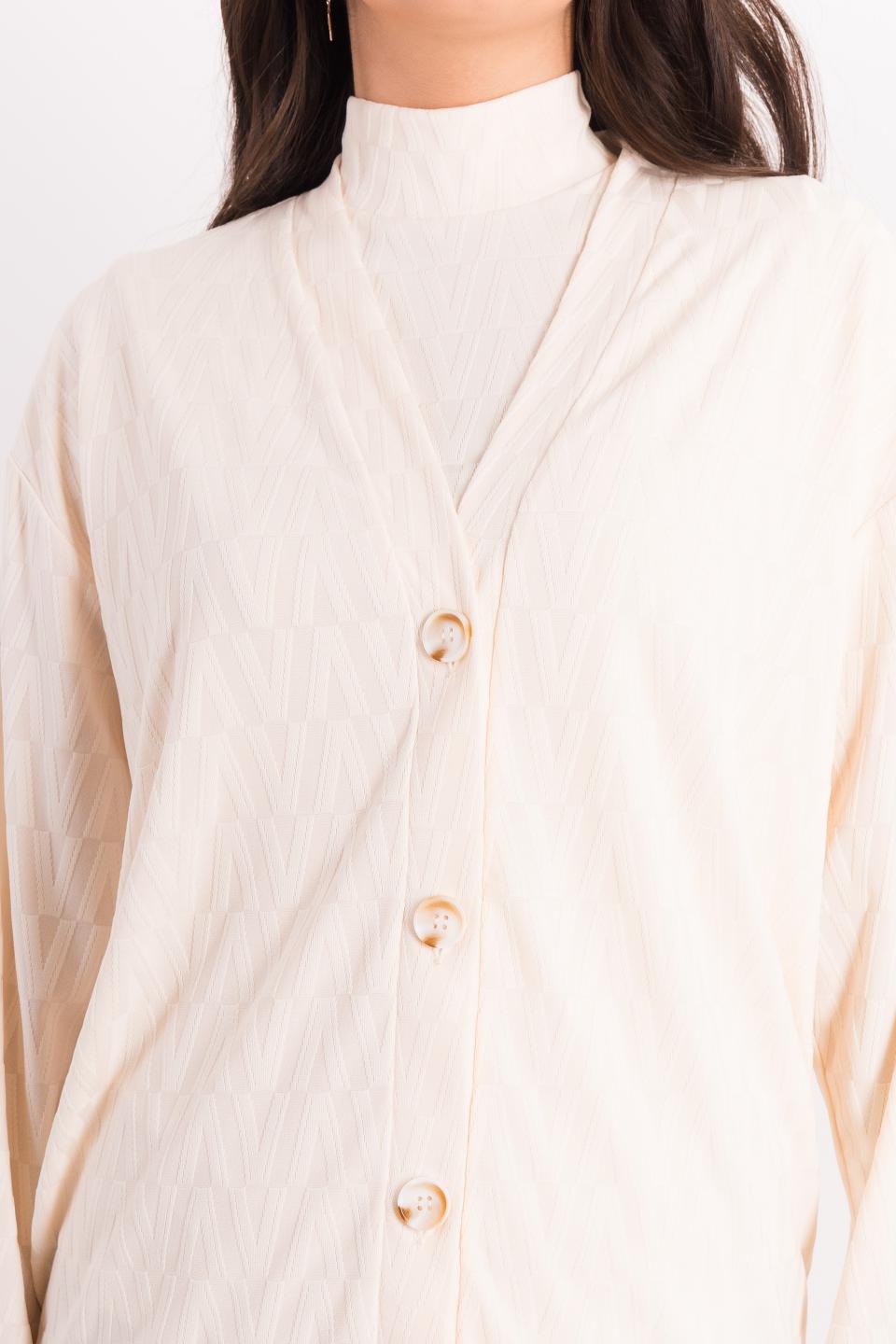 Описание: Свободный кардиган с V-образным вырезом и спущенным плечом дополнит Ваш образ в любой сезон.