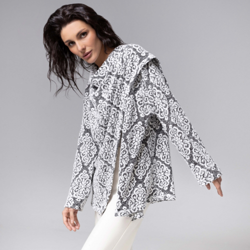 Этот кардиган – как два персонажа в одном: снаружи – деловая серьёзность, внутри – уютный плед для душевных разговоров. Меняйте сторону, как настроение. Вот он – настоящий «Секрет уверенности». Кардиган двустороний. Сложный конструктивный замысел позволяет создавть вариации образов. Многослойная фактура ткани, сочетает мягкость и эластичность высококачественного трикотажа, а крой позаботился о безупречной посадке. Идеально подойдет на любой тип фигуры.Кардиган one size. До 52 размера.