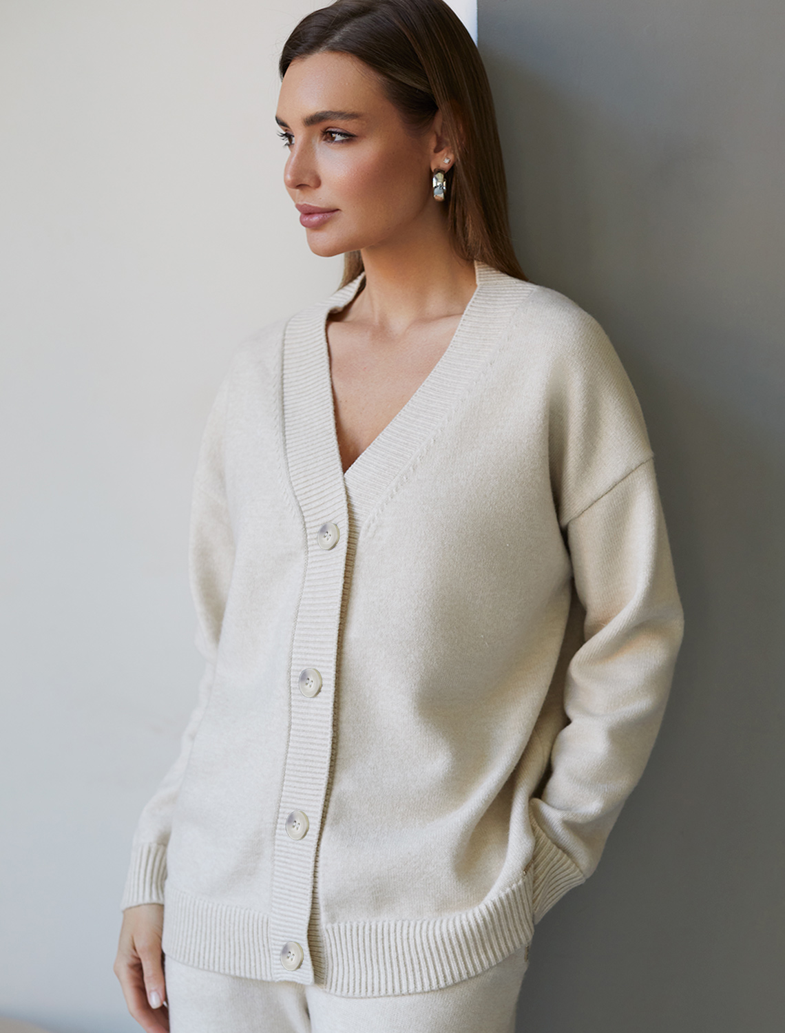Удлиненный кардиган выполнен из мягкой меланжевой пряжи с добавлением кашемира. Классическая модель с глубоким вырезом прямого силуэта идеально сочетается как с брюками, юбками, джинсами, так и с платьями. Застежка на пуговицы. Изделие очень приятное к телу, совершенно не колется и отлично сохраняет тепло. Сочетается в костюме с брюками D38.013, D38.012 и юбкой D36.016 52%ПАН (акрил) 33%ПЭ 8%ПУ 7%Кашемир