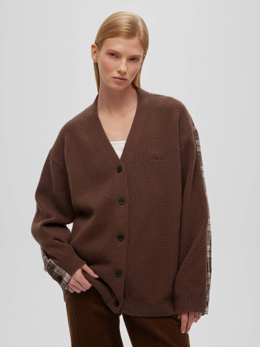 Кардиган комбинированный с шерстью и хлопком, коричневый