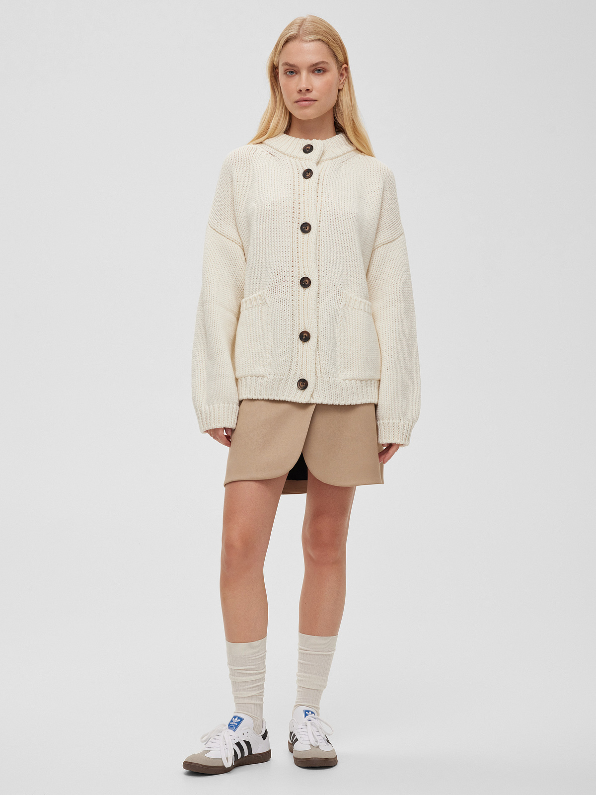 Кардиган на пуговицах крупной вязки, молочный