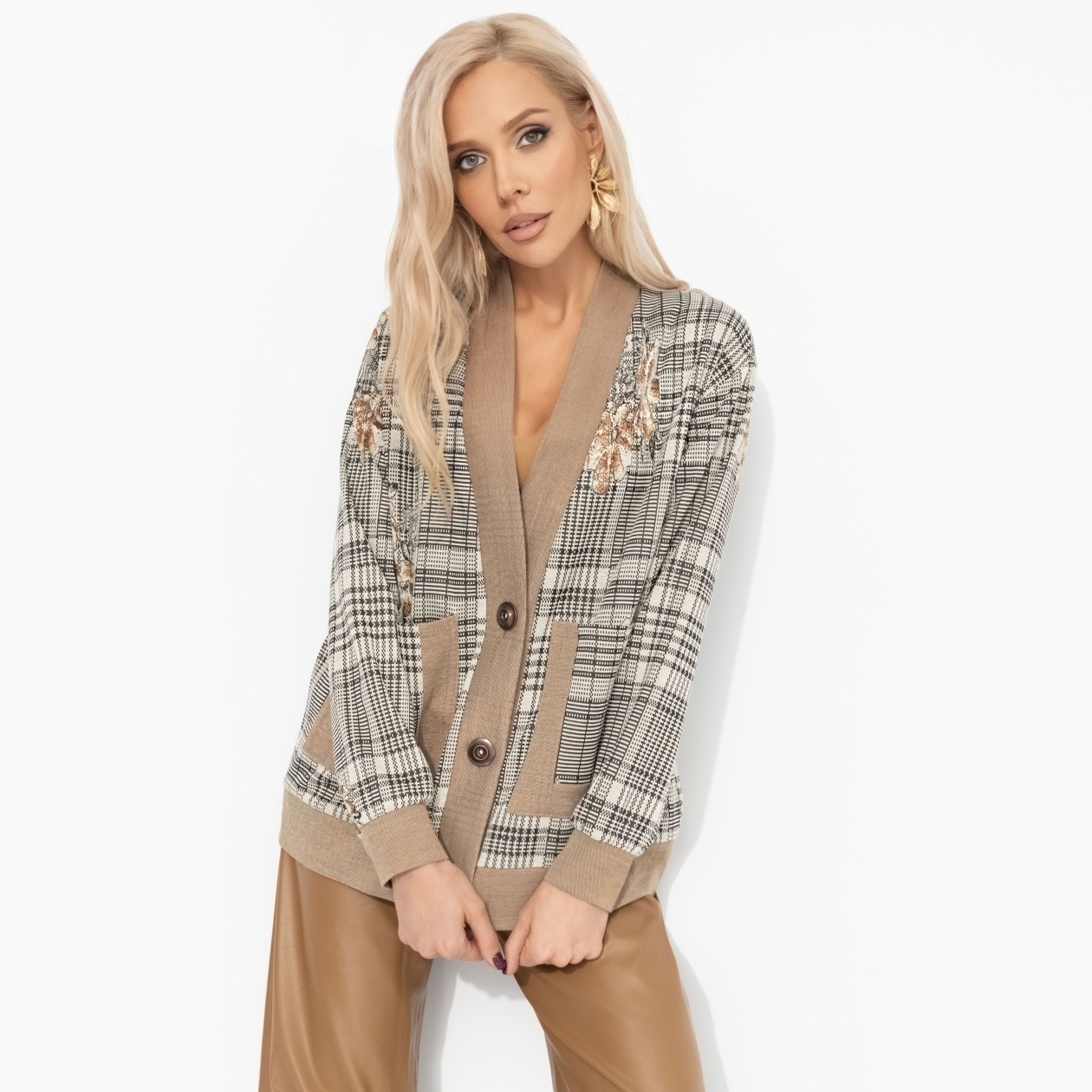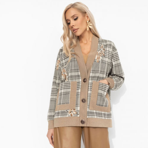 Когда девушка взрослеет, её стиль обретает ту самую утончённую элегантность. Мерой этой внутренней трансформации стал кардиган ЧАРУТТИ – его классическая клетка словно отсылает к вечным ценностям, обретая новый смысл. Безупречный крой говорит о глубоком понимании качества и гармонии. Надевая его, она ощущает не просто комфорт, а спокойную уверенность женщины, познавшей свою силу. Кардиган свободной посадки. Застегивается на пуговицы. Есть карманы по передней стороне изделия.