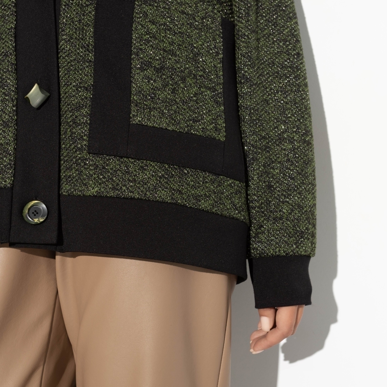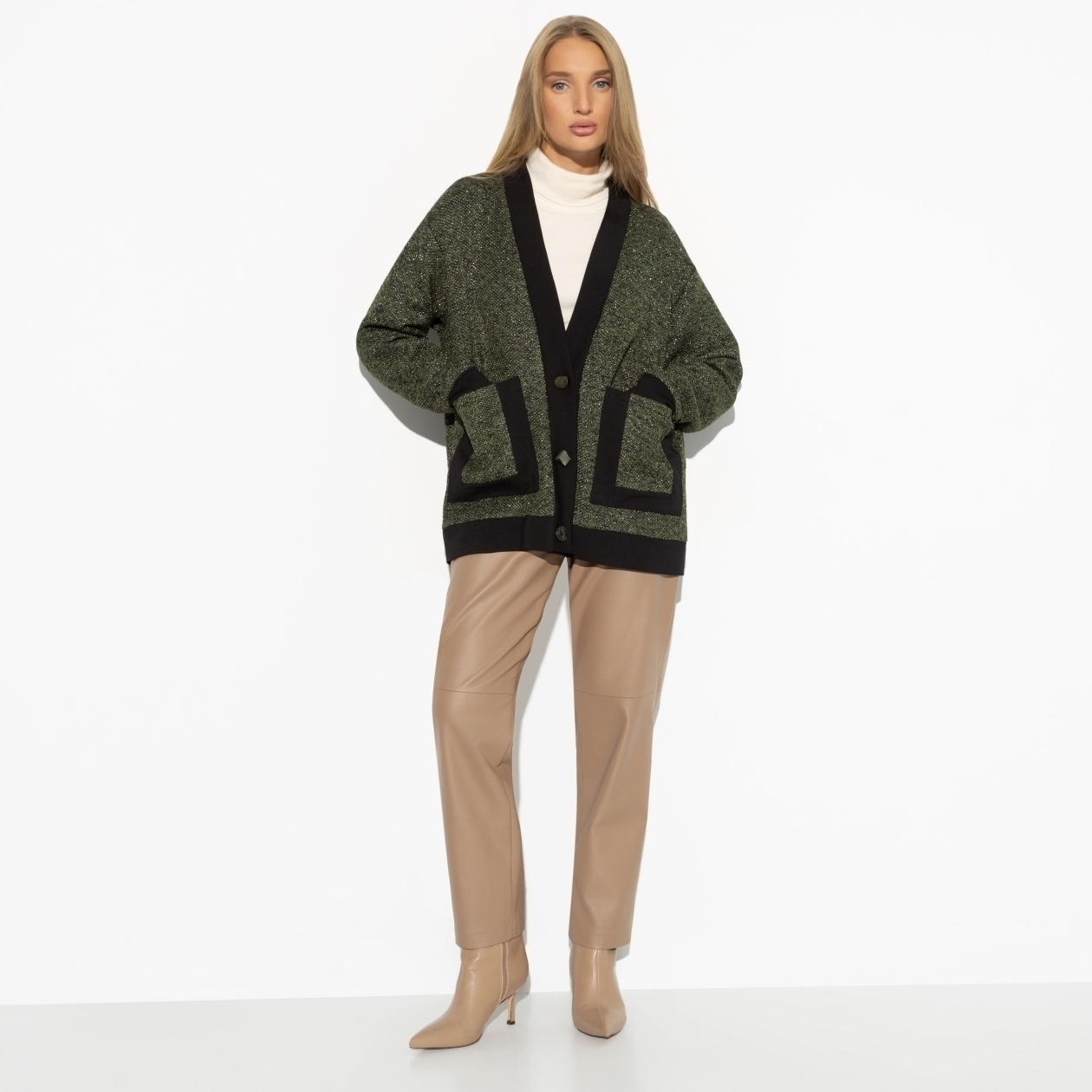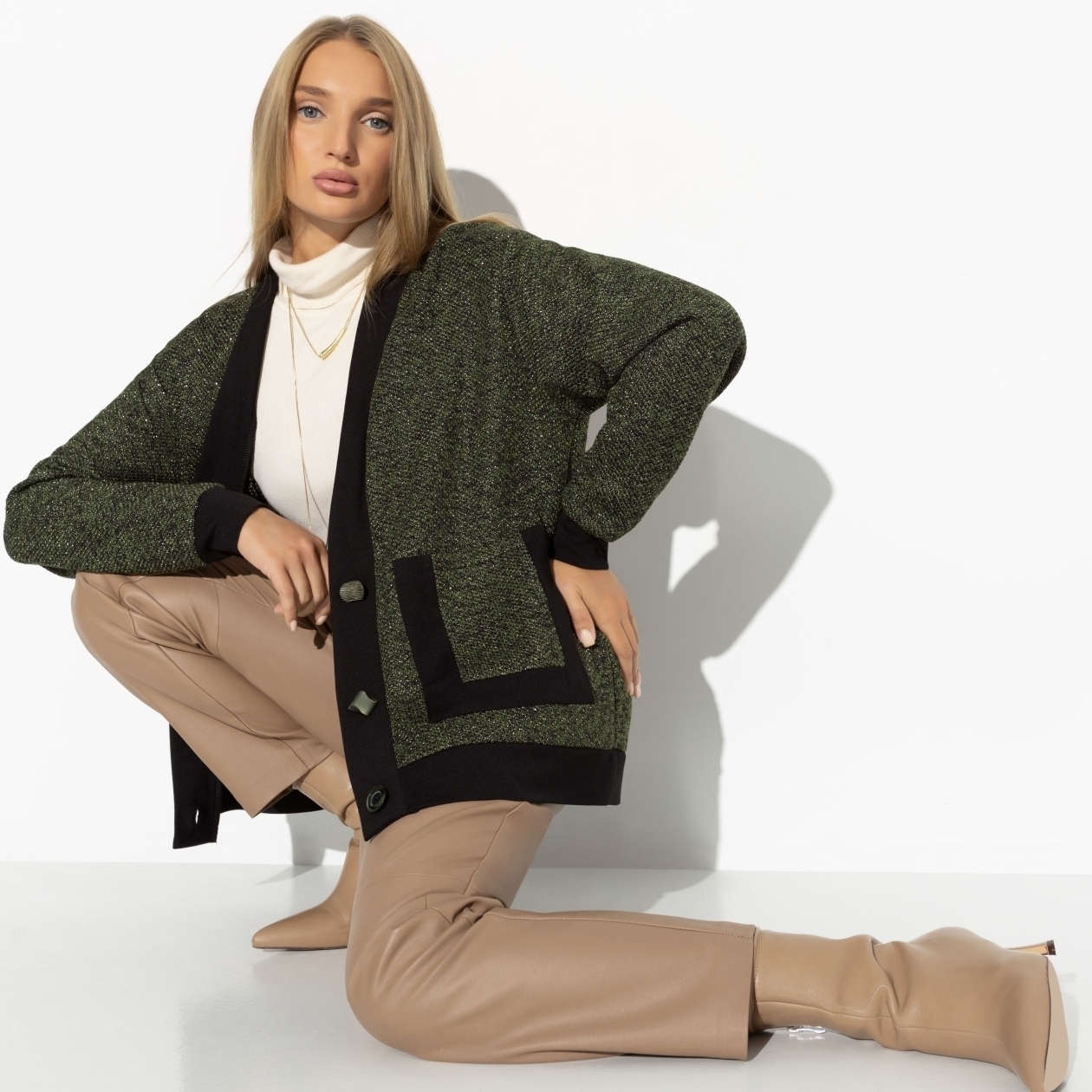 Кардиган «В модном режиме» от CHARUTTI — это воплощение элегантности и стиля, которые вы сможете ощутить на себе, приобретая эту вещь оптом. Изготовленный из изысканного жаккарда и нейлон-роми, он станет вашим верным спутником в любое время года. Представьте себе предрассветное утро, когда свежий воздух обнимает вас, и вы чувствуете уверенность в завтрашнем дне. Этот кардиган с акцентными пуговицами, расположенными в хаотичном порядке, добавляет нотку игривости и индивидуальности в ваш гардероб. Пухлые карманы не только практичны, но и подчеркивают уютность и комфорт этой вещи.