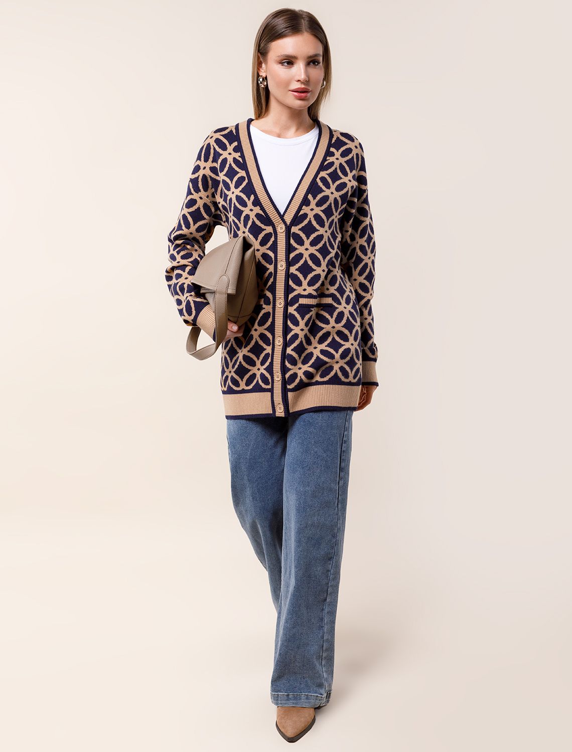 Кардиган жаккардовой вязки выполнен из нежной пряжи на основе вискозы с добавлением кашемира. Мягкая модель не раздражает кожу, приятно ощущается на теле и поддерживает комфортный микроклимат. Совет стилиста: модель гармонично впишется в любой гардероб, добавив образу выразительности. Сочетайте с однотонными брюками, юбкой, платьем или джинсами 50%Вис 20%ПА 20%ПЭ 10%Кашемир