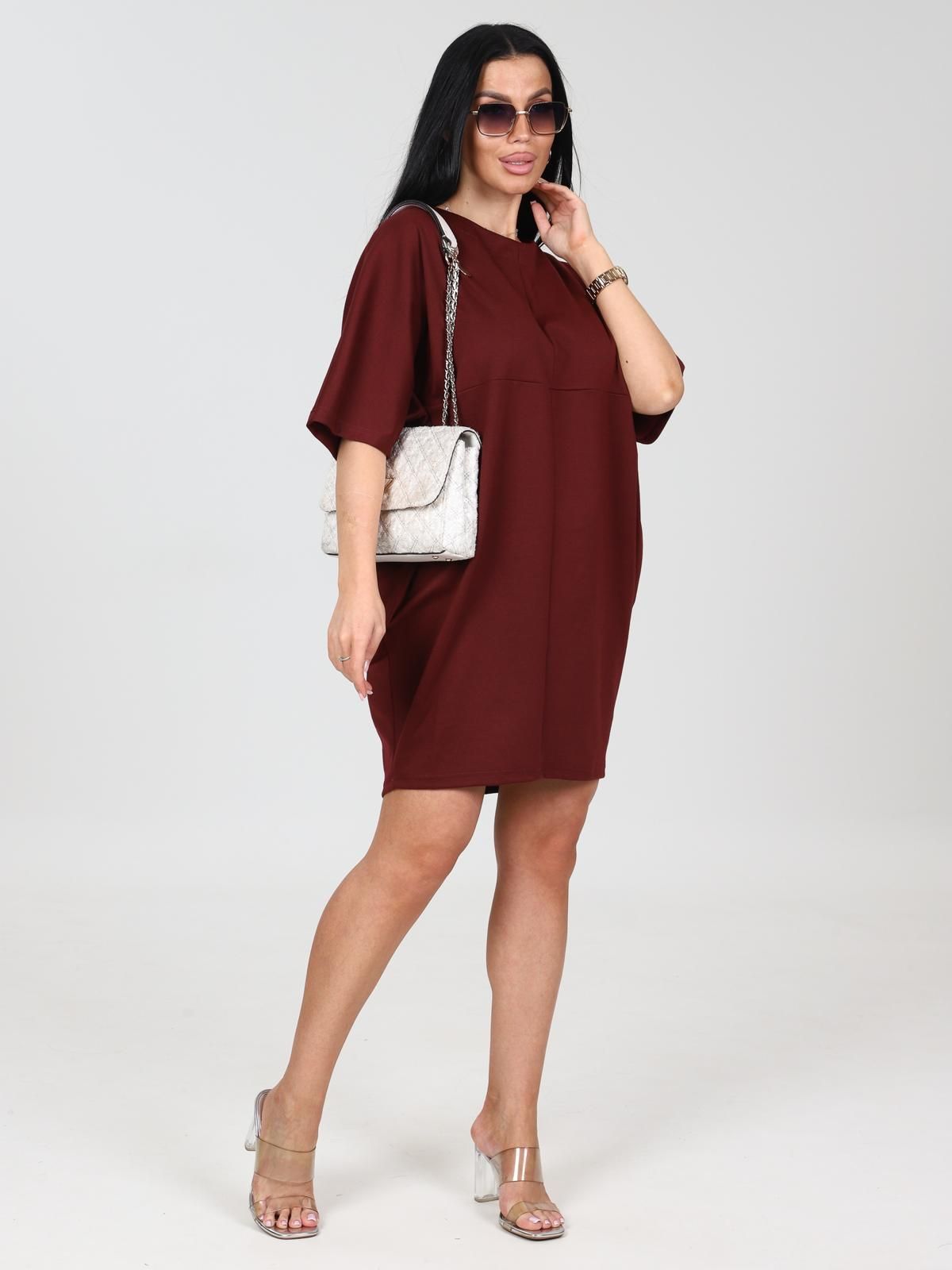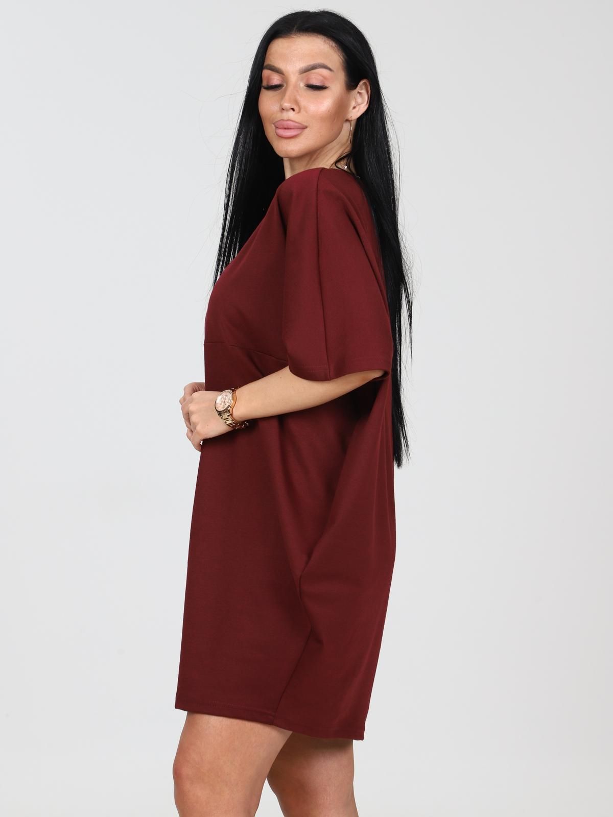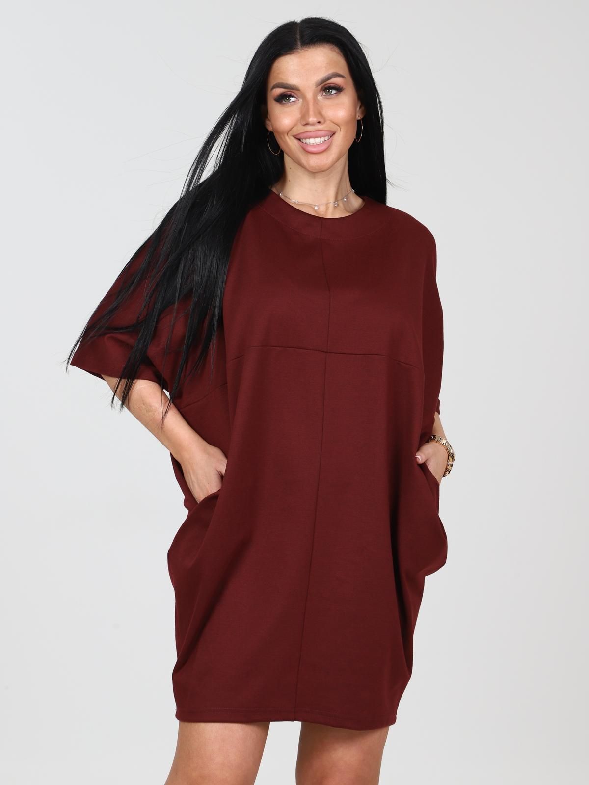 Женское платье выполнена из трикотажного полотна "милано". Платье силуэта "бочонок", с карманами в боковых швах, с рукавом "летучая мышь", круглая горловина обработана обтачкой.