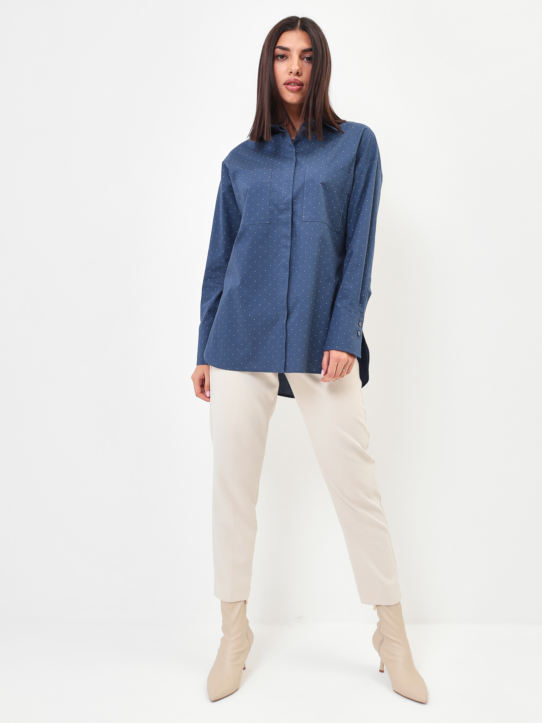 Блузка женская дл. рук. KATHARINA KROSS KK-B-007T-джинс.горох