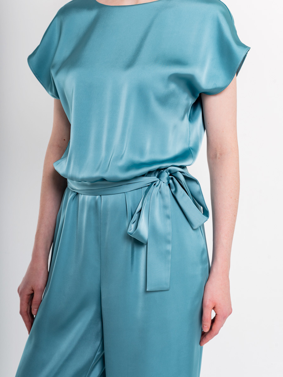 Роскошный атлас: Однотонная ткань дарит изделию благородный блеск и мягкое касание, подчеркивая элегантность каждого движения.