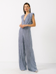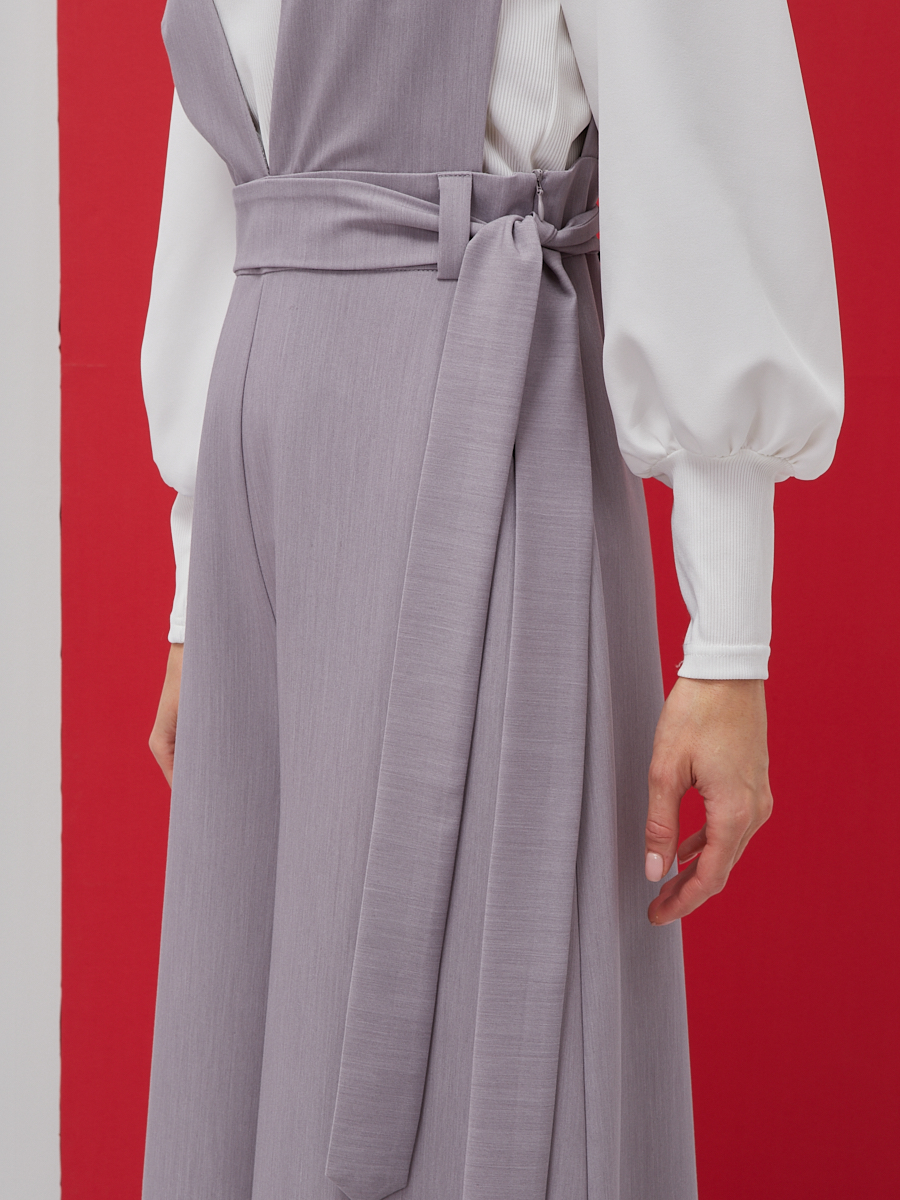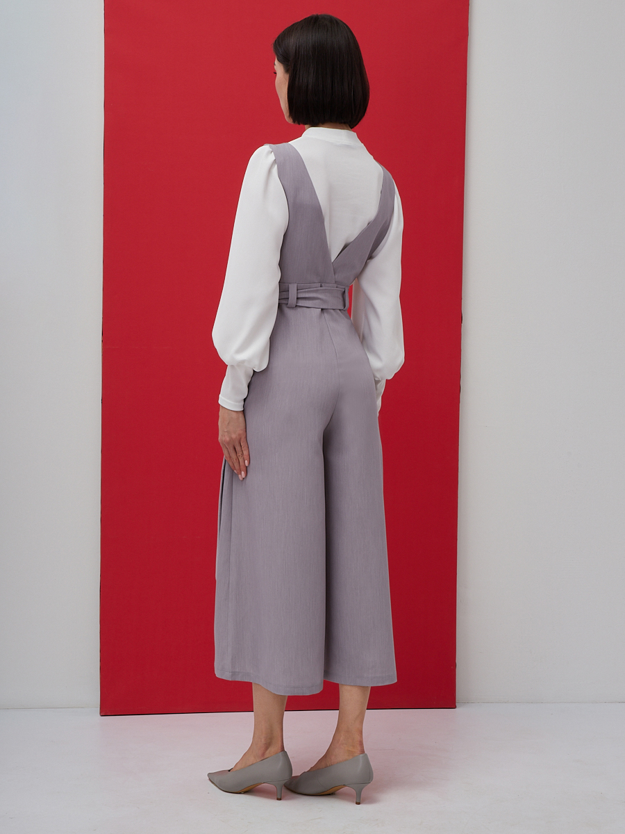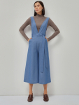 Женский комбинезон из костюмной однотонной джинсовой ткани. Силуэт песочные часы и брюки подчеркнет талию и утонченность. Сдержанные и минималистичные линии лифа и V-образный вырез, подчеркивает стиль. Широкие брюки и карманы в боковых швах позволит чувствовать себя предельно комфортно и уютно. Застежка на потайную молнию. В комплекте съёмный пояс из основной ткани для завершения образа. Превосходство такого Комбинезона скрывается в его разносторонности, позволяя создать практически не ограниченное количество вариантов нарядов.