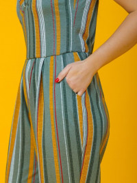 Комбинезон из 100% хлопка на бретелях, с V-образной горловиной, перед на запах, брюки прямые со сладками по линии талии. Отлично подойдет на жаркое лето, в нем вы не останетесь не замеченной. Выполнен в трендовой расцветке весна-лето 2022 года.