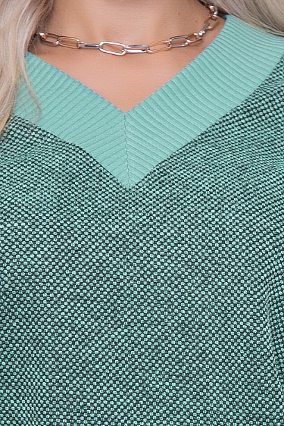 Комплект из джемпера и юбки из трикотажного полотна.Джемпер свободного силуэта со спущенным плечом и контрастной отделкой трикотажной рибаной.Юбка карандаш с разрезом в среднем шве спинки и эластичной резиной  по поясу.