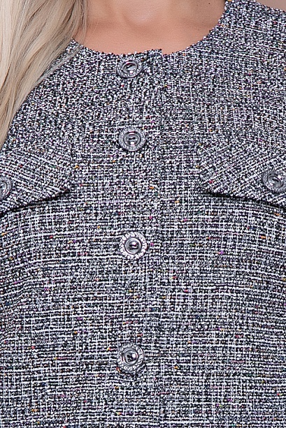 Комплект в стиле шанель из трикотажного полотна твид.Состоит из жакета и юбки.Жакет свободного силуэта с центральной застежкой на петли и пуговицы.Юбка на притачном поясе с резиной по спинке.Застежка на потайную молнию,в среднем шве спинки шлица.