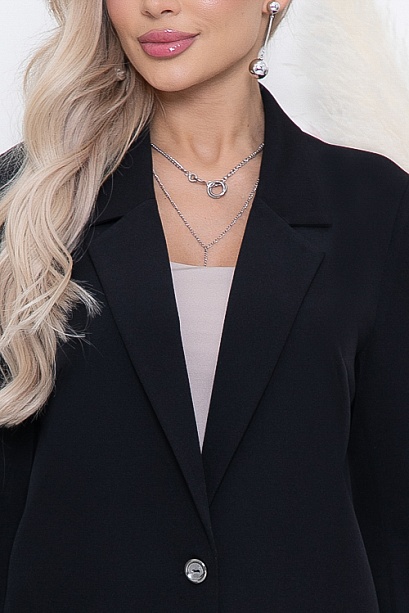 Брючный комплект из костюмной ткани.Жакет свободного силуэта с застежкой на две пуговицы.Воротник отложной с лацканами.По переду жакета накладные удобные карманы.Рукав втачной длинный.Брюки с высокой посадкой, зауженные к низу, по поясу эластичная резина .В среднем шве  переда имитация гульфика.По бокам  функциональные карманы.Заутюженные  стрелки придают стройность фигуре.