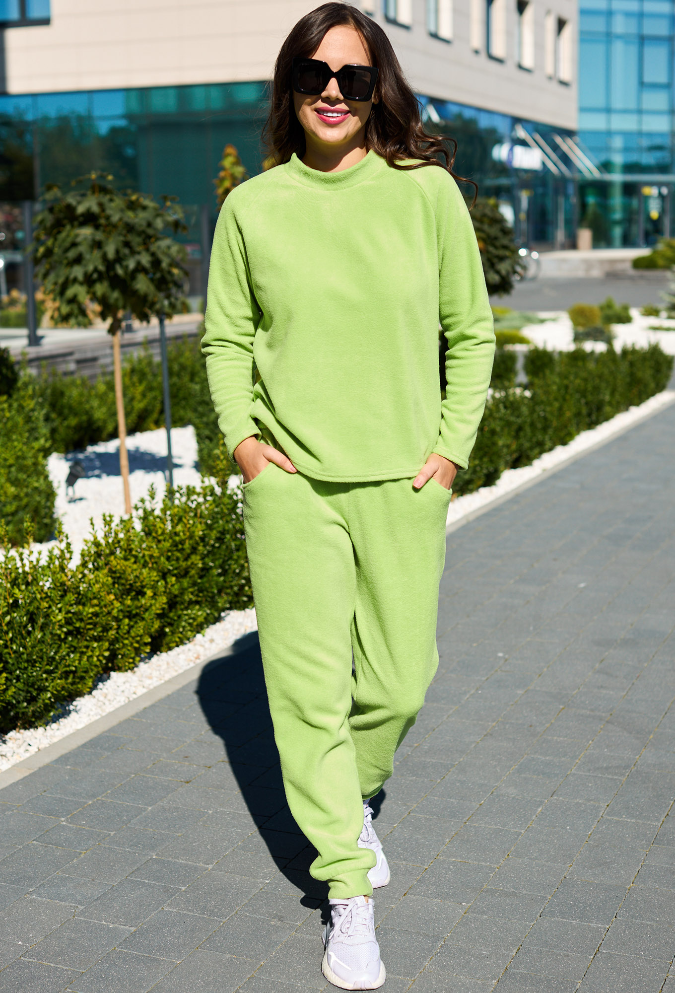 Модель: Анастасия 942 лайм Рост: ..показать164 см (девушка на фото ростом 170см) Сезон: Круглогодичный Тип ткани: Полиэстер 100%Комплект женский 2-х предметный (джемпер, брюки), модель в спортивном стиле из ткани "флис". Джемпер прямого силуэта, рукав реглан, по горловине бейка. В брюках пояс на резинке, по бокам карманы, по низу манжет.