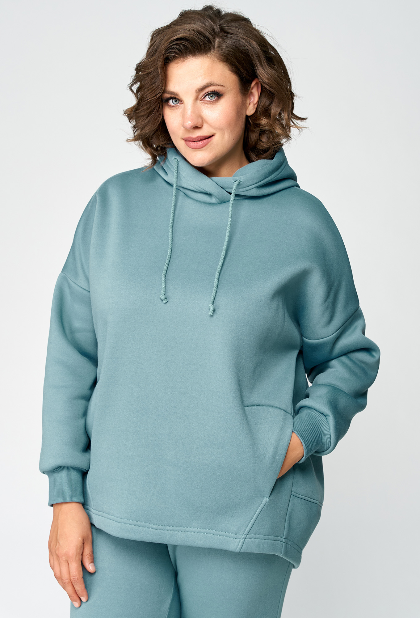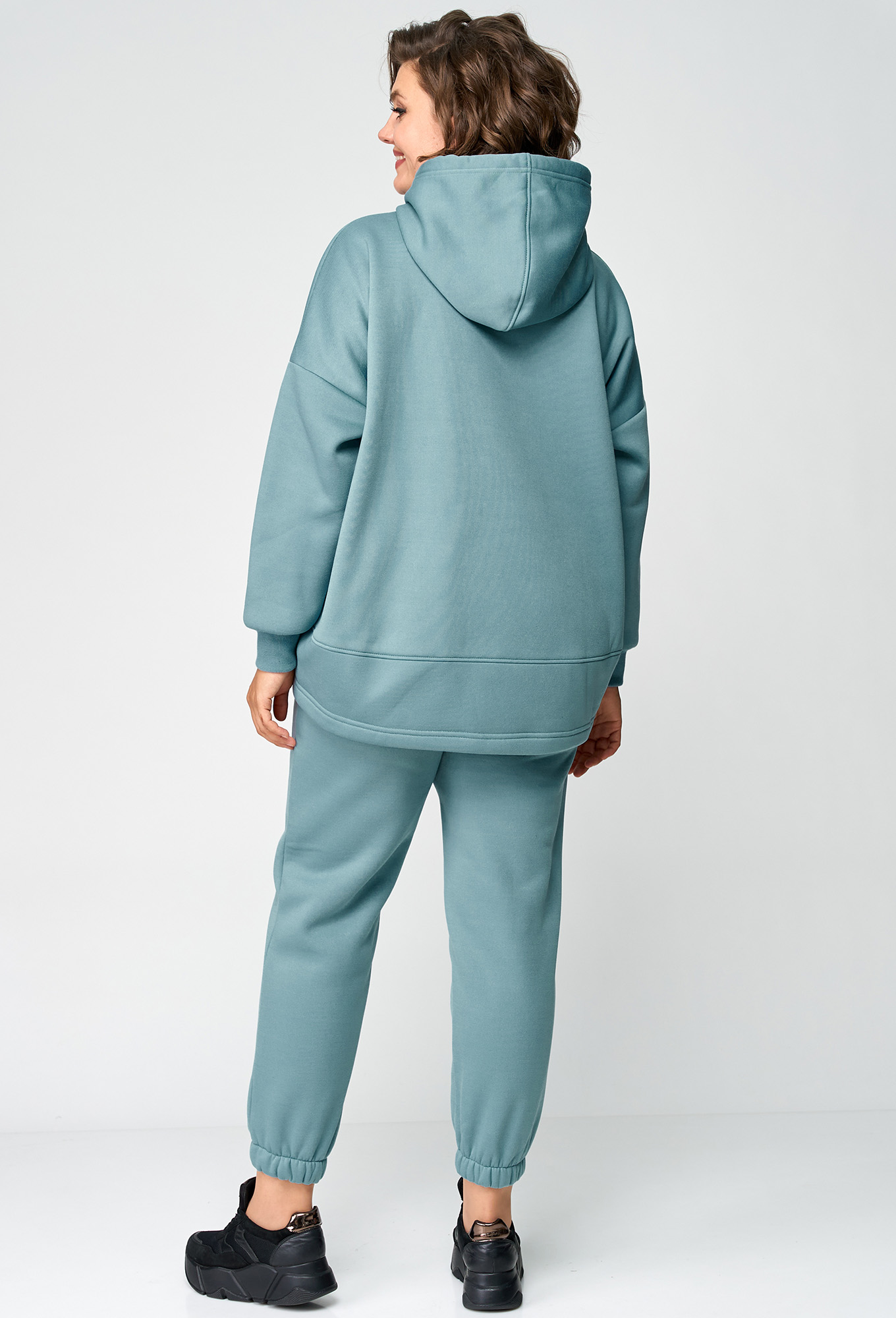 Модель: Анастасия Мак 1136 мятный ..показать>Рост: 164 см (девушка на фото ростом 170см) Сезон: Осень-Зима Тип ткани: 72% Хлопок, 26% ПЭ, 2% эластанКостюм женский, состоящий из худи и брюк, выполнен из трикотажного полотна с изнаночной стороны на флисе. Худи свободного, объемного силуэта. Полочка худи с подрезами, горловиной круглой формы с капюшоном. Верхняя часть спинки цельная, с переходящими боковыми швами на полочку. Нижняя часть спинки притачная, изогнутой формы, за счет чего образуется объем. Рукав одношовный, длинный, на притачной манжете по низу._x000D_