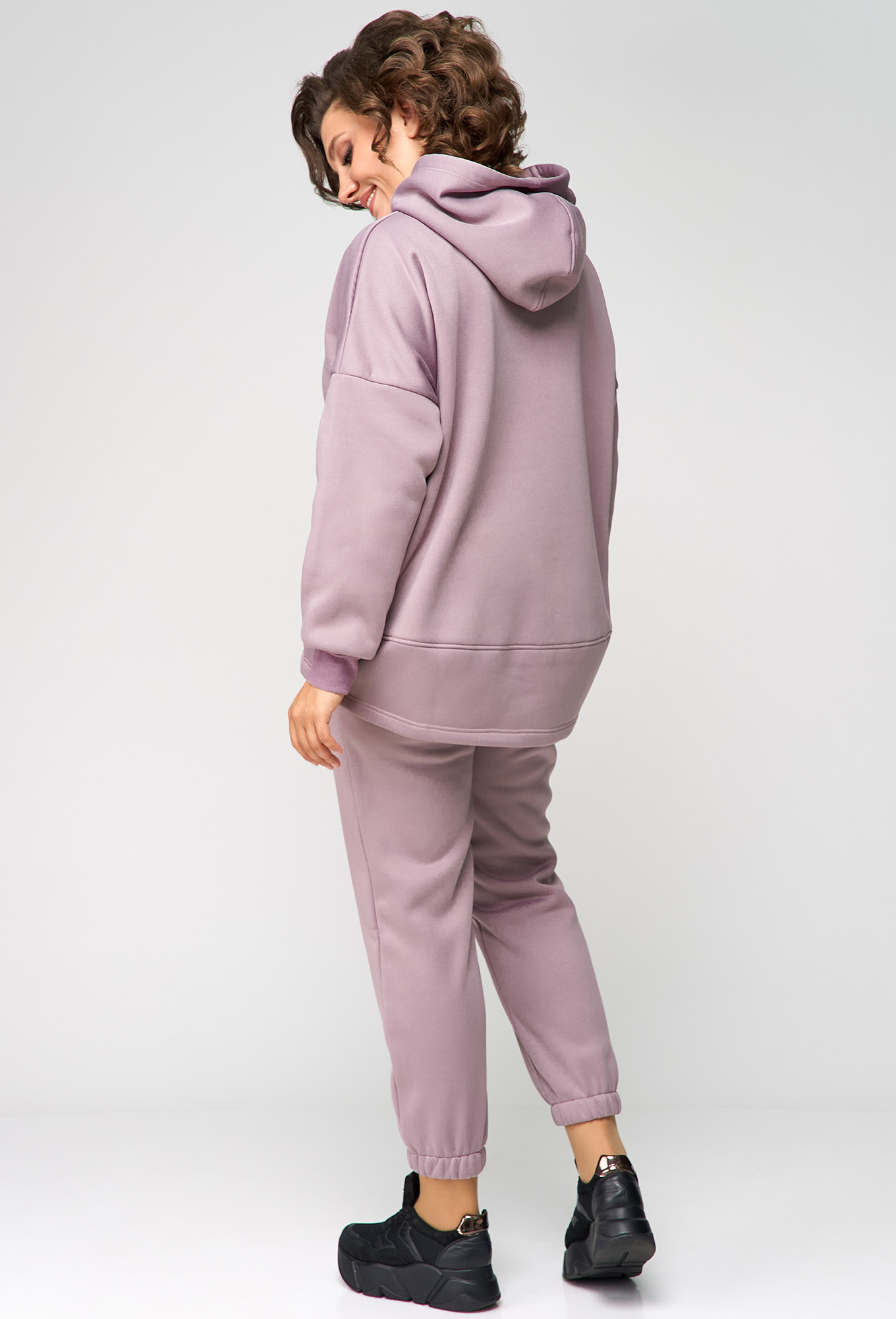 Модель: Анастасия Мак 1136 пыльная роза..показатьi> Рост: 164 см (девушка на фото ростом 170см) Сезон: Осень-Зима Тип ткани: 72% Хлопок, 26% ПЭ, 2% эластанКостюм женский, состоящий из худи и брюк, выполнен из трикотажного полотна с изнаночной стороны на флисе. Худи свободного, объемного силуэта. Полочка худи с подрезами, горловиной круглой формы с капюшоном. Верхняя часть спинки цельная, с переходящими боковыми швами на полочку. Нижняя часть спинки притачная, изогнутой формы, за счет чего образуется объем. Рукав одношовный, длинный, на притачной манжете по низу._x000D_